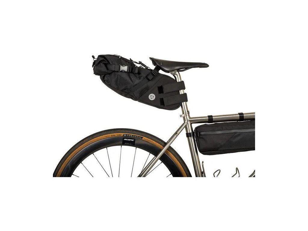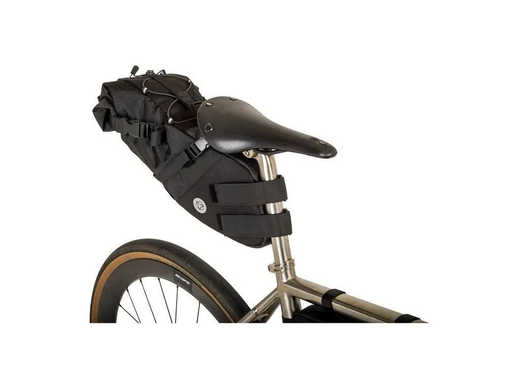 Tato taška Venture je nezbytnou součástí každého bikepackingového výletu. Brašna se jednoduše přichytí pod sedlo a ani si nevšimnete, že ji vezete do doby, než budete potřebovat suché oblečení nebo věci na spaní. Voděodolný Dryliner materiál a rolovací uzávěr udrží vaší výbavu vždy suchou dokonce i v nejnáročnějších podmínkách, takže se můžete soustředit na zážitky z jízdy a všechny zajímavosti okolo. Díky zesílenému materiálu a robustnímu designu brašna přežije všechny možné výlety i mimo civilizaci.