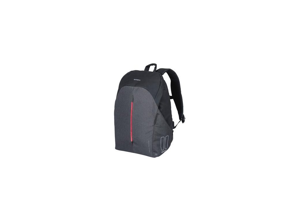 Batoh Basil B-Safe Nordlicht má kapacitu 13 litrů a je pozoruhodným produktem s několika inovacemi. Batoh na kolo? Ano, taška na kolo a batoh v jednom! Má konstrukci proti krádeži se skrytým zipem a několika skrytými přihrádkami, abyste si mohli své věci bezpečně vzít s sebou! Není až tak objemný a nabízí místo pro 13palcový notebook nebo iPad. Můžete si s sebou vzít i nabíječku na elektro kolo a různé malé doplňky. Na ramenním popruhu je skryté kapsička na kartu či jiný doklad a s USB portem můžete svůj smartphone nabít kdekoliv. Další chytrou funkcí je LED osvětlení na přední straně Nordlicht*. Batoh Basil B-Safe má polstrované ramenní popruhy a plně polstrovaný zadní panel. Díky tomu je batoh velmi pohodlný na nošení. Hrudní popruh drží ramenní popruhy pohromadě, a to i při jízdě na kole. Jednoduše ho zavěste na nosič vašeho kola pomocí systému Hook-On. Protože ho můžete převážet na nosiči zavazadel, po příjezdu na cílové místo nebudete mít zpocený záda. A protože je hmotnost tašky na kole, vaše jízda bude mnohem stabilnější (a tedy bezpečnější). Praktické! Díky tomu je batoh B-Safe ideální na dojíždění do práce či školy. Vlastnosti: Obsahuje nepromokavý návlek na ochranu vašich věcí. Vybaveno reflexními poutky, na které můžete připevnit LED světla nebo helmu. Kompaktní design vhodný pro 13palcový notebook. Baterie nejsou součástí balení (3x AAA baterie). Popruh na kufr na kolečkách, abyste ho mohli přenášet na kufru. Objem 13 litrů. * Nordlicht Technology může být použita jako doplňkové osvětlení. Za žádných okolností by neměla nahradit zákonem požadované světlo na kolo. Kdykoliv na kole používáte světlo, musí vždy odpovídat místním předpisům.