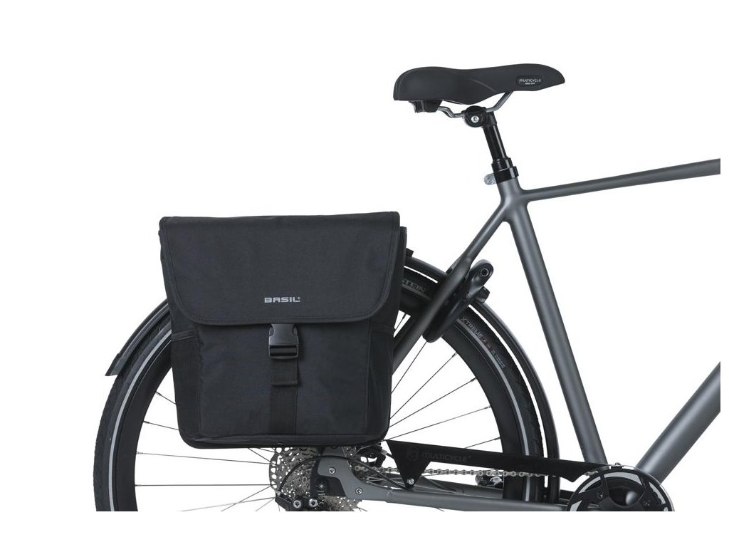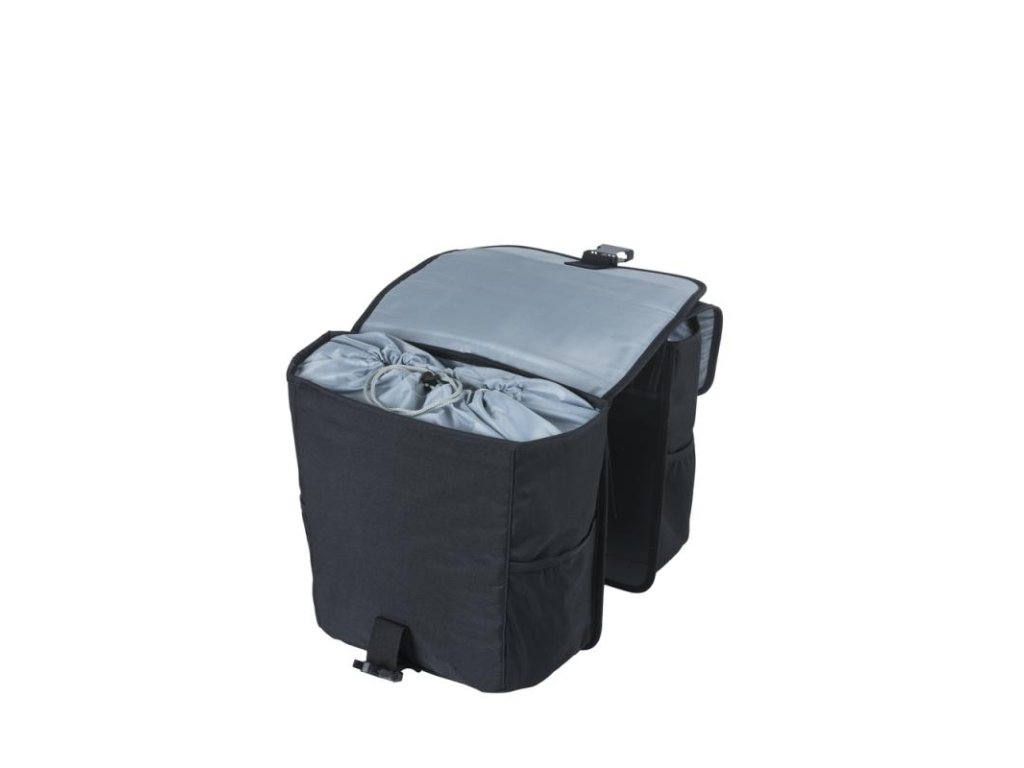 Basil GO Double Bag je dodáván v klasické černé a je jen vstupním modelem pro cyklisty, kteří požadují velkou kapacitu, když jsou na cestách. Ať už jde o jízdu na kole s přáteli nebo výlet do supermarketu, máte zde dostatek místa na dlouhý seznam nezbytných věcí. Samotná taška je uzamykatelná, což znamená, že váš obsah je během cesty dobře chráněn, zatímco spojovací popruhy drží obě tašky spojené. Inovativní design této tašky znamená, že na zadní část kola můžete připevnit další doplňky, včetně dětských sedaček a dalšího příslušenství nosiče. Boční kapsy poskytují další úložný prostor pro lahve s nápoji a deštníky s celkovou kapacitou 32 litrů. Tato taška se snadno připevní na nosič zavazadel vašeho kola, včetně elektrických kol. Vlastnosti: Reflexní detaily poskytují lepší viditelnost. Elastické boční kapsy poskytují sekundární úložný prostor pro menší předměty. Rozměry: 14x27x31 cm (jedna taška) Nosnost: max. 10 kg.