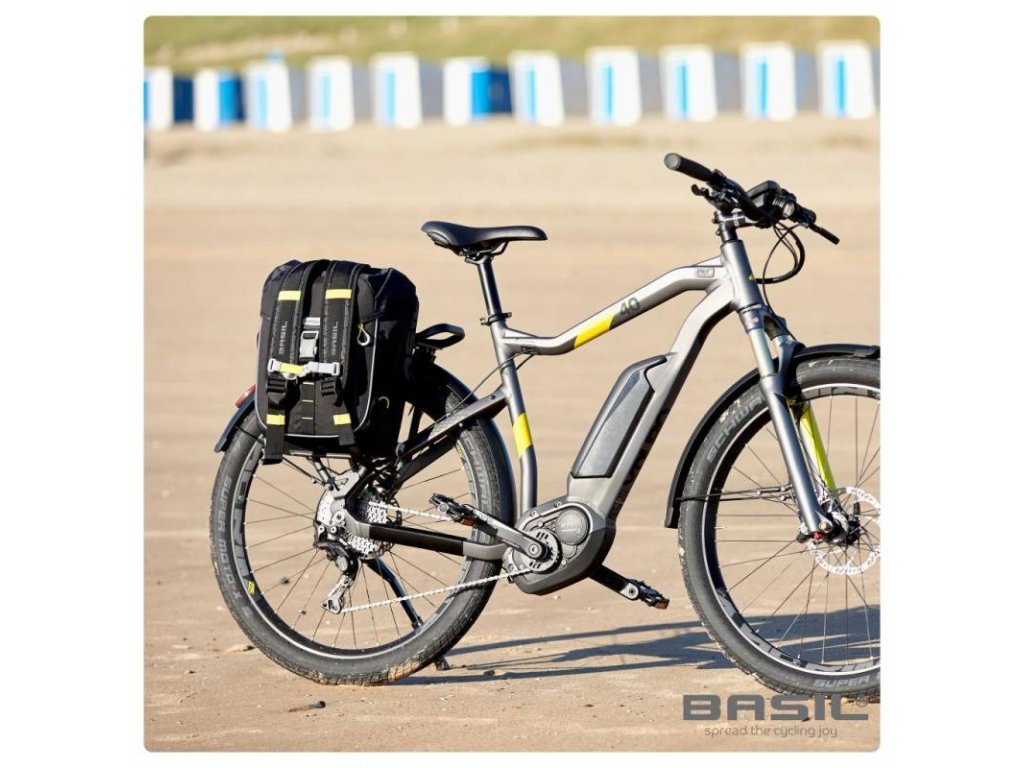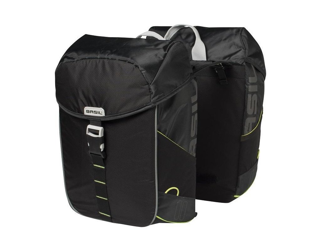 Basil Miles Double je voděodolná dvojitá taška s objemem 32 litrů. Po stranách jsou dvě extra elastické kapsy, vhodné na přepravu láhve s nápojem nebo deštníku. Ideální na přepravu nákupů nebo na rekreační jízdu na kole. Pokud náhle začne pršet, vaše věci zůstanou suché. Taška je vodoodolná a má rolovací zapínání nahoře s vrchním překrytím. Reflexní detaily vás zviditelní pro ostatní účastníky silničního provozu. Na tašku můžete také zavěsit další LED světla, má několik oček pro LED osvětlení. Sportovní dvojitá kapsa na kolo. Montáž na zadní nosič. Nepromokavá (IPX3), polyester, uzávěr rolltop, poutko na LED světlo, vnitřní vyztužení, Universal Bridge systém kompatibilní se základnou adaptéru MIK (není součástí balení), detaily v barvě limeta, reflexní prvky. Objem: 32 litrů. Rozměry: 34 cm x 19 cm x 43 cm (vnější rozměr). Taška má Basil Universal Bridge System vhodný pro všechny nosiče zavazadel (včetně e-bike) Vhodná i pro nosiče MIK. Reflexní detaily a držák pro LED světla zajišťují lepší viditelnost ve tmě. Taška je vodotěsná, díky čemuž jsou vaše věci suché během silné bouřky.