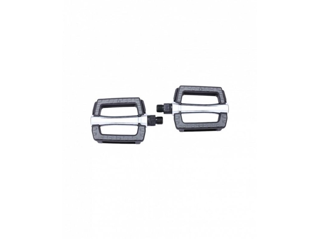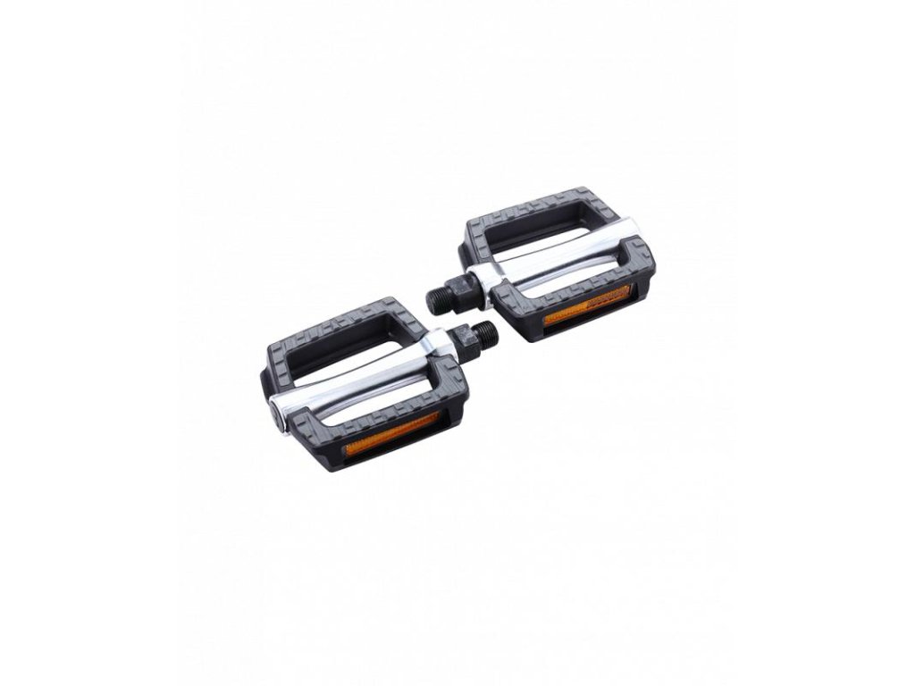 Hliníkové tělo s lehkou a odolnou klietkou. Gumový protiskluzový povrch. Boronová oska. Kuličková ložiska. Oboustranná odrazová sklíčka pro extra viditelnost.