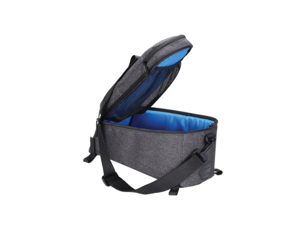Velký úložný prostor s vnitřní vložkou z ochranné pěny Zadní poutko na zadní LED světlo 4 popruhy na suchý zip na zajištění vaku o nosič, zamezují pohybu kapsy dopředu nebo do stran Nastavitelný a odnímatelný popruh na rameno Kompatibilní s návlekem RainCover (BSB-97, jako ochrana před deštěm a špínou) Materiál kapsy: Nylon Systém uzavírání: Zip Typ uchycení: Suchý zip Snadná montáž/demontáž Objem v cm3: 11500 Rozměry V x Š x D: 160 x 160 x 360 mm Barva: šedá melange