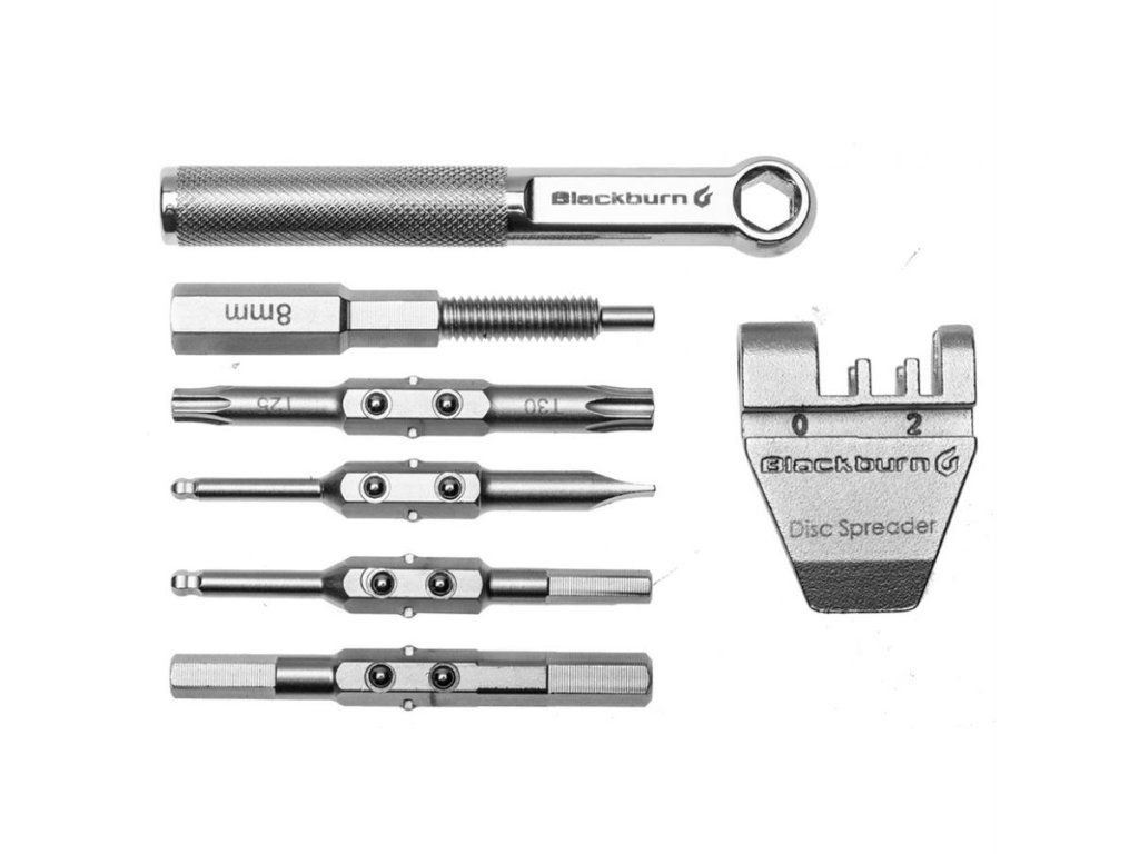 NÁŘADÍ inbusy 2,5 / 3 / 4 / 5 / 6 / 8 mm • plochý šroubovák• Torx klíč T25 a T30 • nýtovačka • centrovací klíče #0, #1 a #2 • oddělovač brzdových destiček
