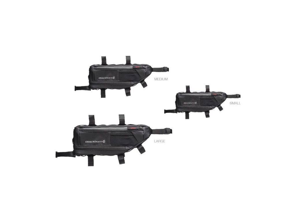 Rámová brašna se zvětšitelným objemem pro různé velikosti rámů: Small, Medium a Large. Jednotlivé přihrádky jsou perfektně promyšlené, nechybí ani otvor na protažení hadičky vodního rezervoáru. Brašna je voděodolná a díky adaptabilnímu upínacímu systému je přiděláte na každé kolo.
