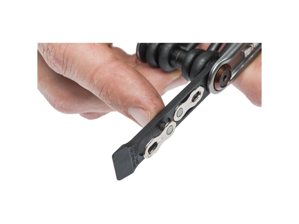 Obsahuje inbusy 2; 2,5; 3; 4; 5; 6; 8 mm • šroubovák • torx 25 a 30 • nýtovačka (kompatibilní i s 12ti rychlostním řetězem) • oddělovač brzdových destiček