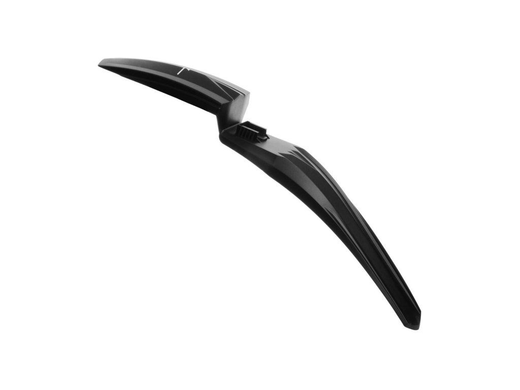 Moderní přední plastový MTB blatník DISC pro 24-29" kola s upevněním na přední vidlici pro kotoučové brzdy. Upevnění blatníku v korunce vidlice a podélné prolisy zabezpečují jeho stabilitu při jízdě v terénu. Rychloupínací mechanismus umožňuje snadnou montáž a demontáž blatníku. 82-56mm Délka: 575mm Váha: 125g