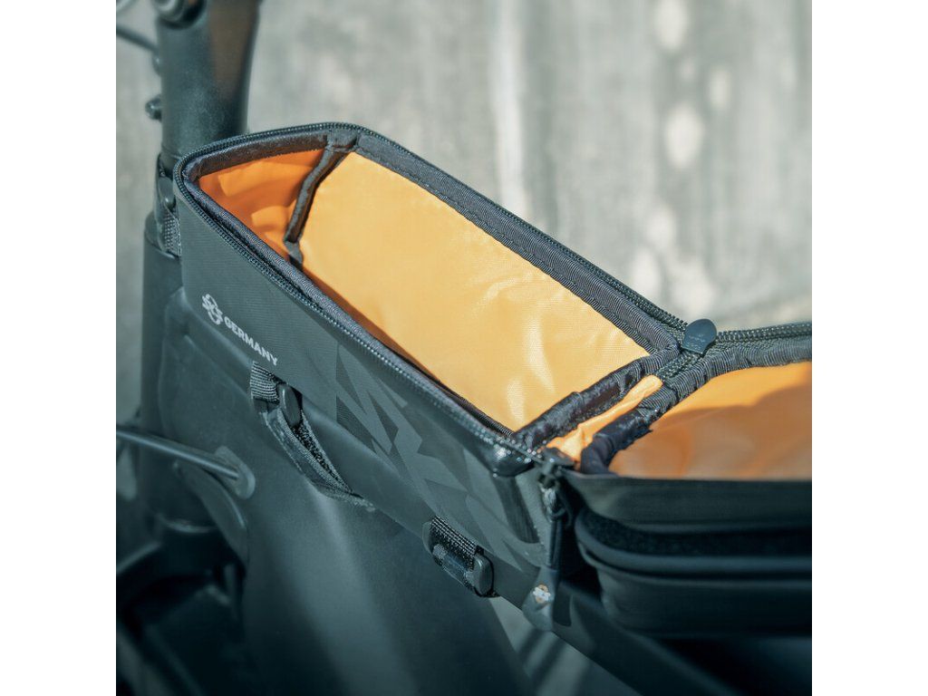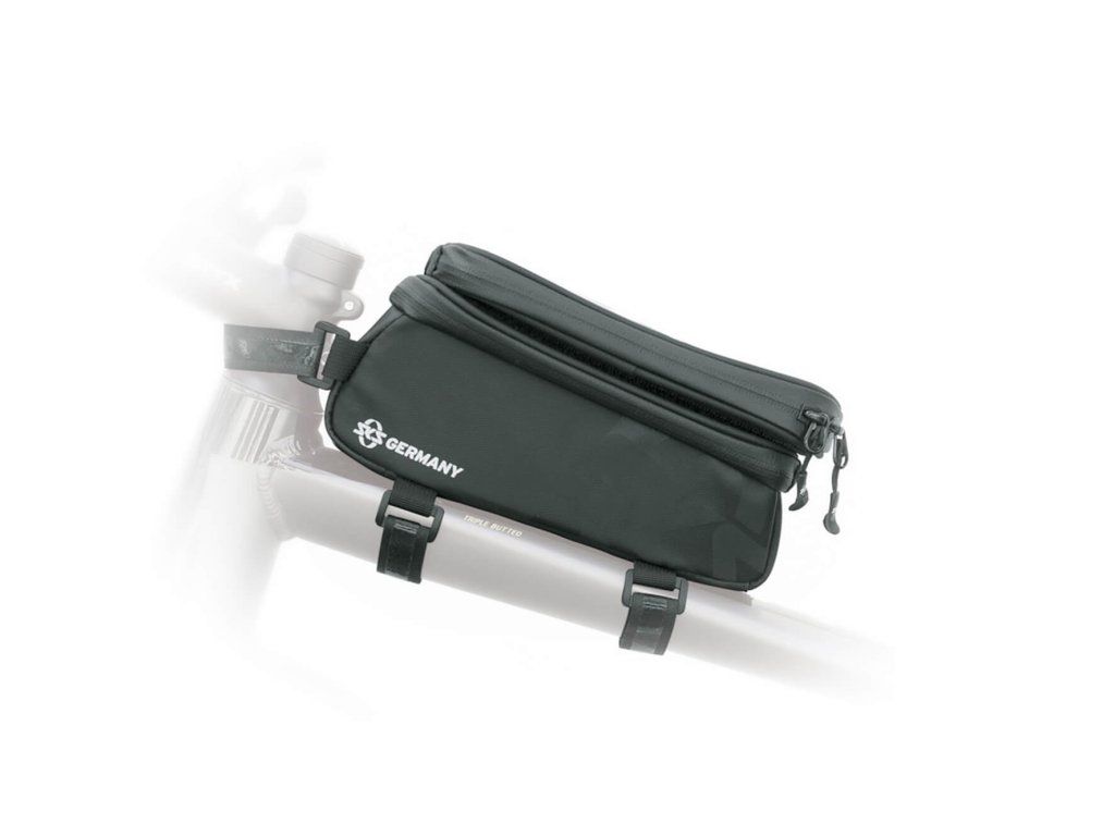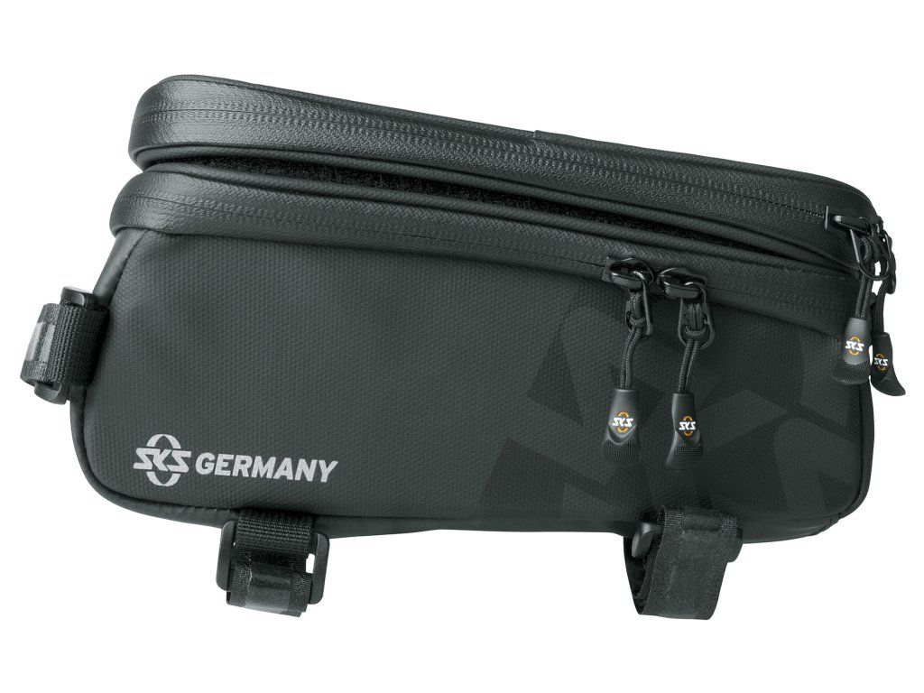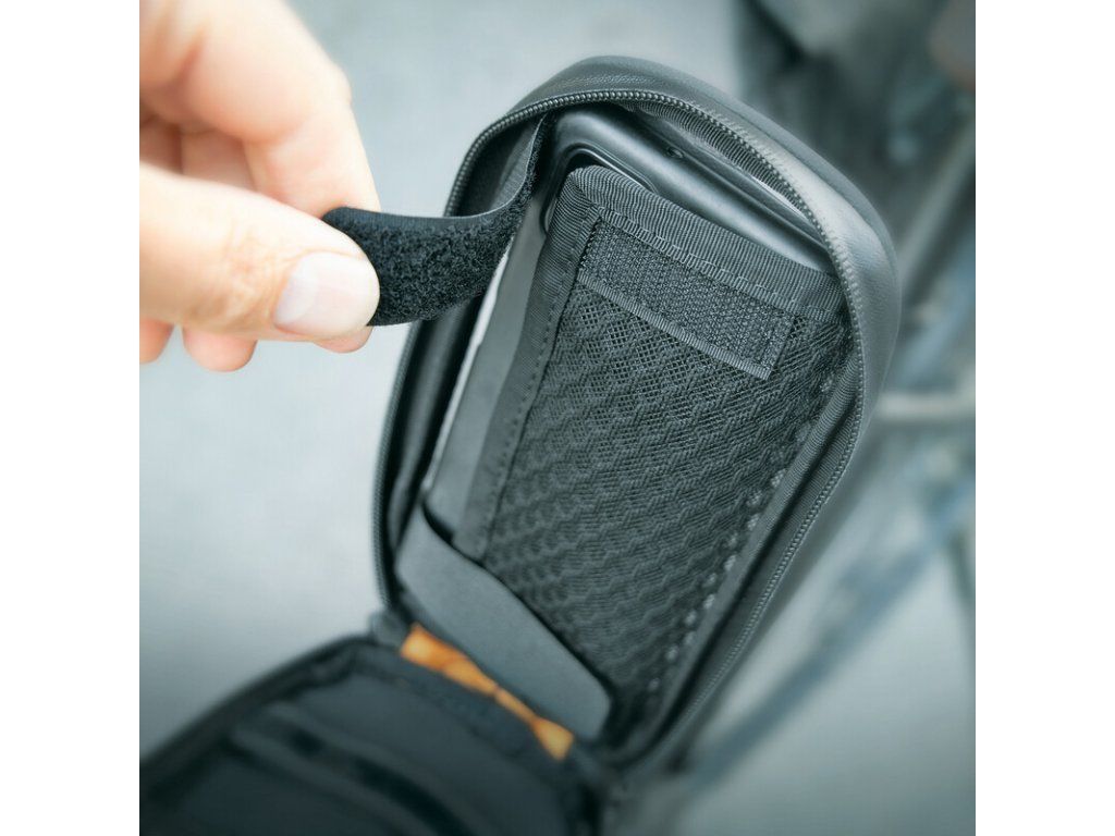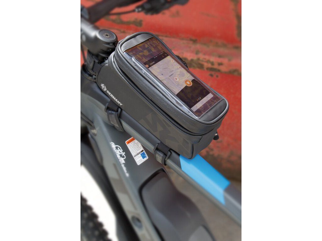 Chytrá rámová cyklo brašna SKS Explorer Smart s oddělitelným pouzdrem na telefon kompatibilním s dotykovými displeji a integrovanou kapsou na drobnosti. Brašna je vyrobena z pogumované voděodolné tkaniny.