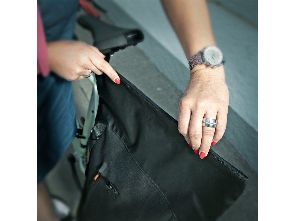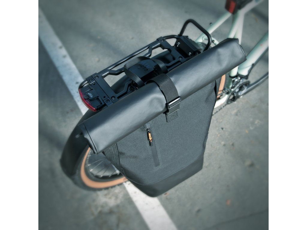 Elegantní INFINITY URBAN SIDE BAG nabízí dostatek prostoru pro vybavení, notebook nebo nákupy s kapacitou 20 litrů. Připojuje se ke vzpěrám nosiče pomocí dvou pevných háků a lze ji také upevnit spodním otočným hákem. To také zabraňuje bočnímu kývání tašky během jízdy na kole. Díky velkému rozsahu nastavení háčků lze tašku na kolo připevnit nejen na nosič INFINITY UNIVERSAL, ale také na téměř jakýkoli nosič. Voděodolná, robustní a flexibilníRolovací vstup se zipem a magnetickým klipem činí INFINITY URBAN SIDE BAG flexibilní a tím lze přizpůsobit velikost. Vysoce kvalitní materiály z voděodolné tkaniny a svařované zipy chrání obsah před všemi druhy počasí. Mezi další funkce patří polstrovaná přihrádka na notebook (až 15”), vyztužená zadní strana a spodní strana brašny, snadno přístupná vnější přihrádka a také reflexní pruhy našité po stranách.Boční brašnu lze vyjmout z nosiče pouze jednou rukou a díky ramennímu popruhu ji použít jako tašku přes rameno.• Voděodolný zipem a magnetickým klipem• Nastavitelný zajištěný hák a otočný hák• Lze použít vpravo nebo vlevoMateriál: PolyesterBarva: BlackHmotnost: 1100 gObjem: 20 litrůRozměry: 620 x 430 x 170 mm