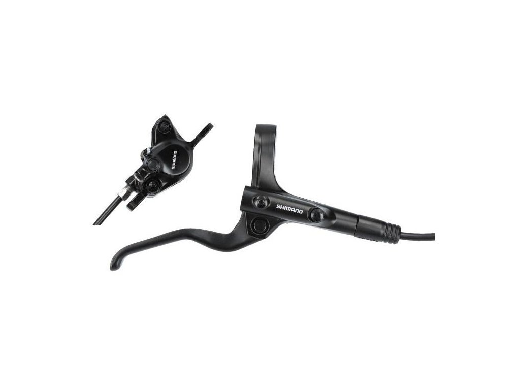 Kotúčová brzda MT201. Zložená z brzdovej páky BLMT201 a strmeňa BRMT200 bez adaptéra, spojená hadicou BH59-SS. Platničky-resin B01S.