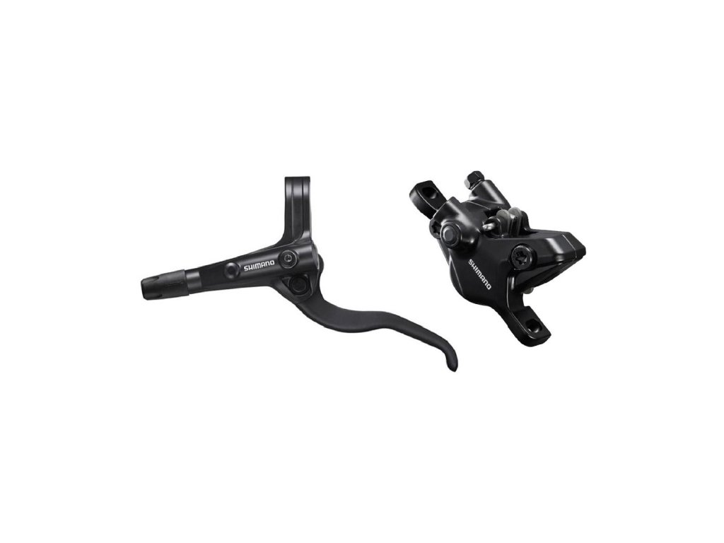 Hydraulická kotúčová brzda MT410. Zložená z brzdovej páky BLMT401 a strmeňa BRMT410 bez adaptéra, spojená hadicou BH59-SS. Platničky-resin B01S.