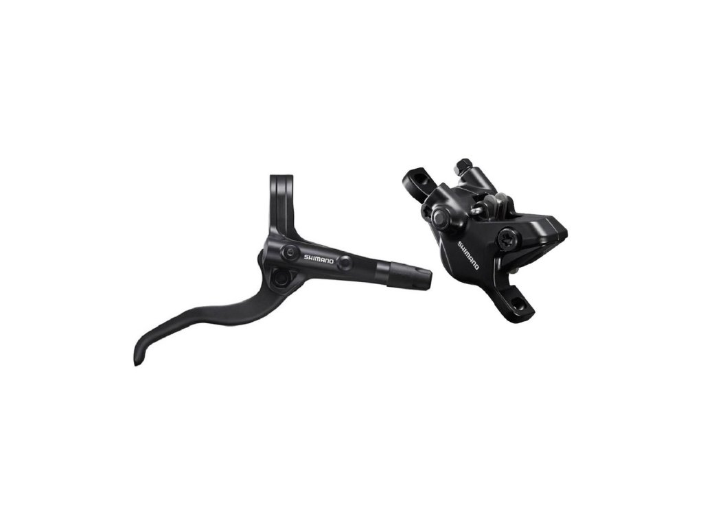 Hydraulická kotúčová brzda MT410. Zložená z brzdovej páky BLMT401 a strmeňa BRMT410 bez adaptéra, spojená hadicou BH59-SS. Objímka páky kompatibilná pre montáž radenia s úchytom I-Spec EV. Platničky-resin B01S.