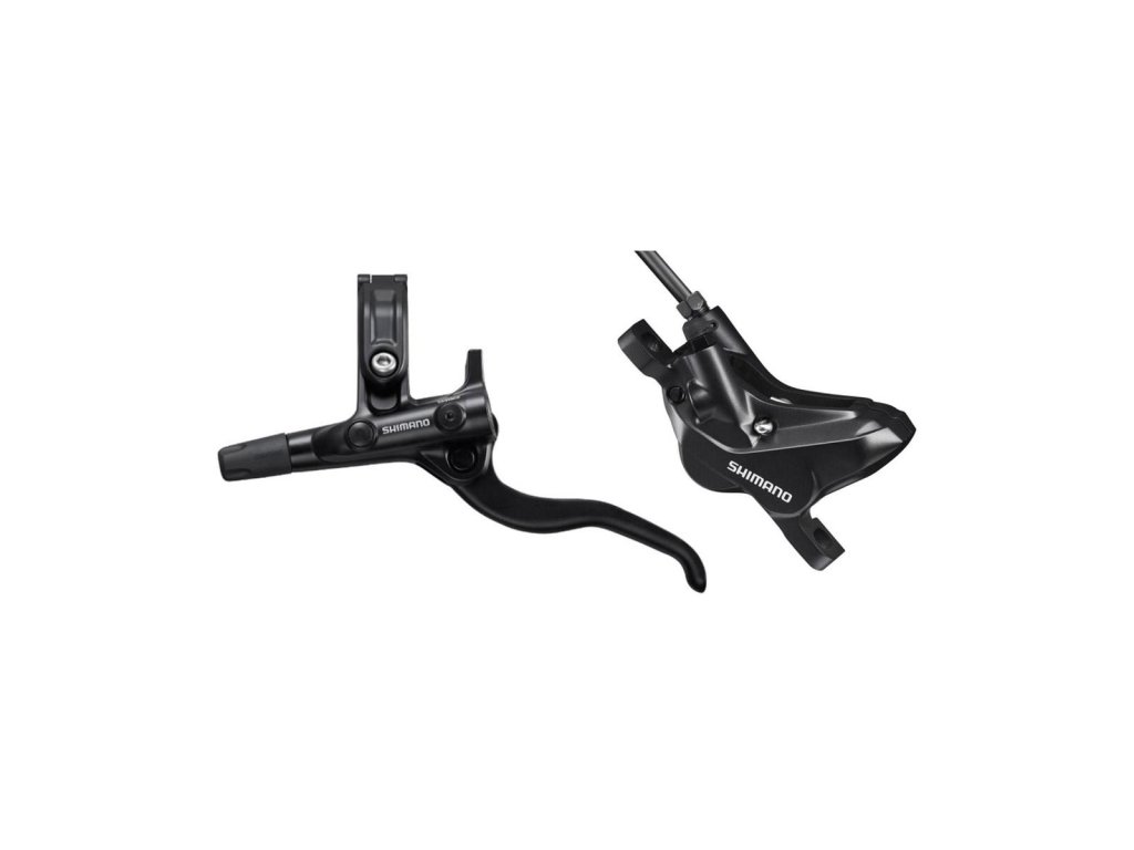 Hydraulická kotúčová brzda MT420. Zložená z brzdovej páky BLM4100 a strmeňa BRMT420 bez adaptéra, spojená hadicou BH90-SS. Objímka páky kompatibilná pre montáž radenia s úchytom I-Spec EV. Platničky-resin D03S.