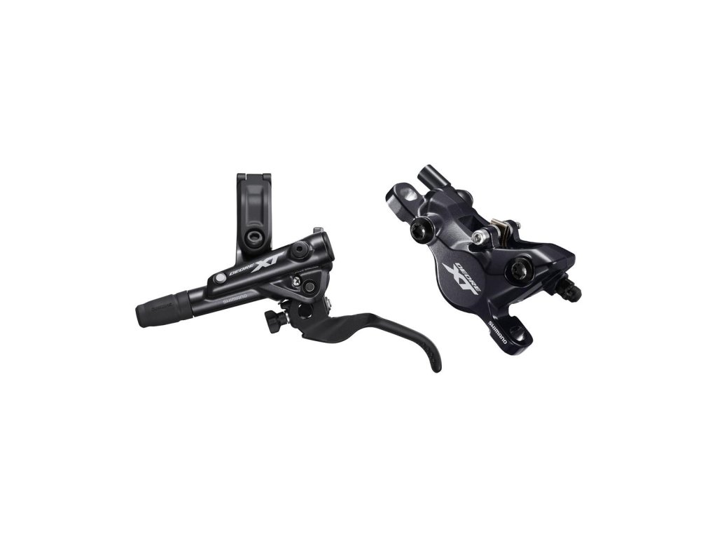 Hydraulická kotúčová brzda XT M8100. Skladá sa z páky a strmeňa M8100 a hadičky BH90. Brzdy sú naplnené minerálnym olejom a odvzdušnené. Objímka páky kompatibilná pre montáž radenia s úchytom I-Spec EV. Brzdové platničky G05A.