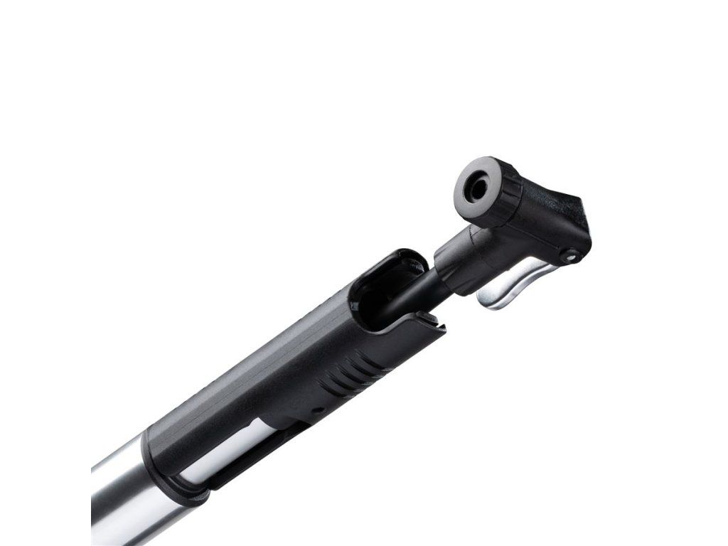 Unikátní lehká minipumpa, která se pohodlně vejde do batohu a se kterou hravě nafouknete kolo i na trailu. Pumpa je totiž vybavena pogumovanou základnou, vyklápěcím nožním stojánkem pro skvělou stabilitu během dofukování, skládací rukojetí, skrytou hadičkou uvnitř těla a patentovanou magnetickou hlavicí na oba typy ventilků.