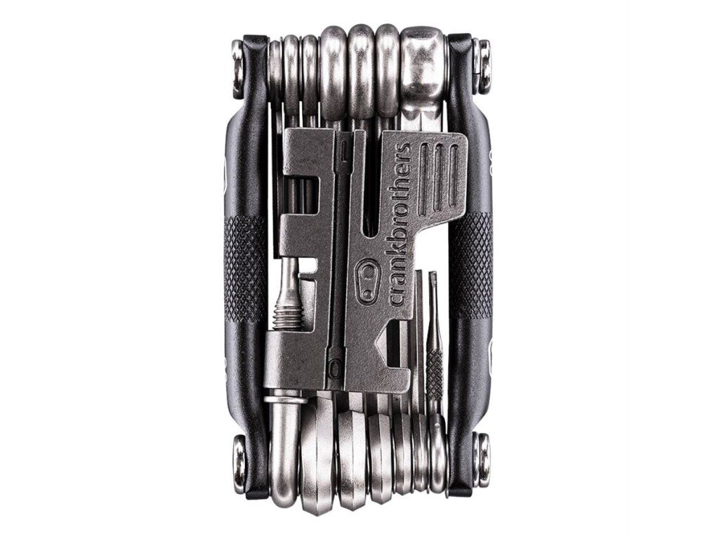 nářadí vysokopevnostní ocel • nýtovač 8 / 9 / 10 / 11 /12 rychlostní řetězy • centrovací klíče #0, #1 a #2 • inbusy 2 / 2,5 / 3 / 4 / 5 / 6 / 8 mm • šroubováky křížový a plochý • Torx klíč T10 a T25 • integrovaný knotovač • klíč na ventilek • nástroj na rovnání disků