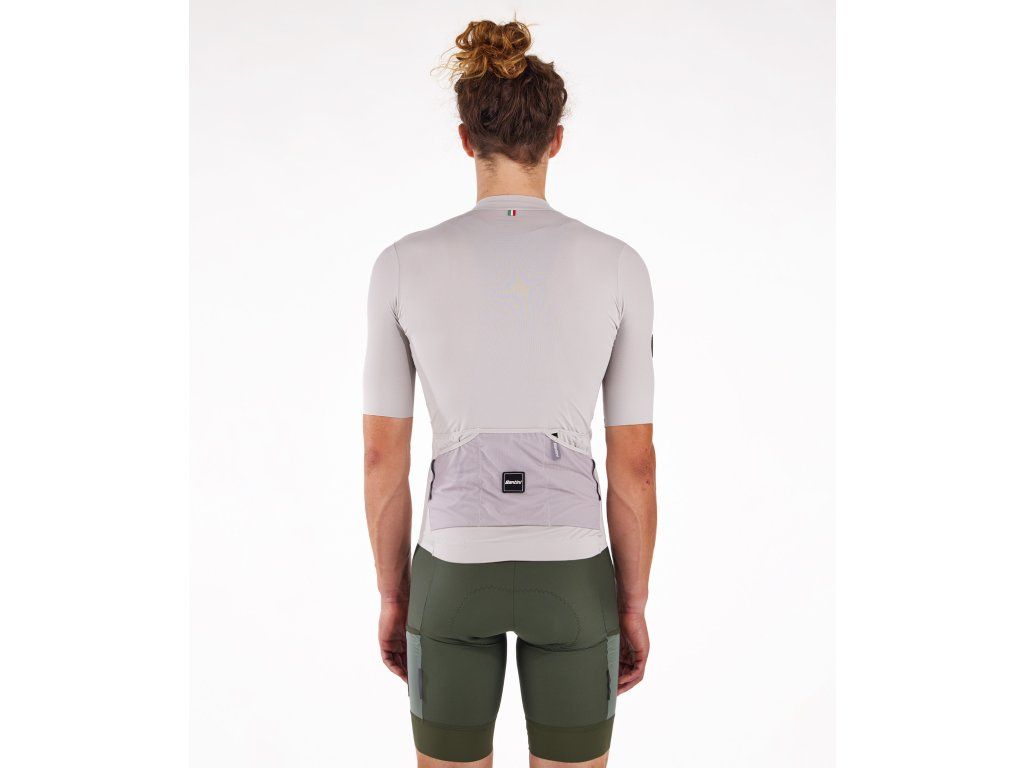 Lehký a stylový cyklistický dres SANTINI Unico Colore je navržen pro maximální pohodlí a výkon v teplých podmínkách. Unisex střih, strečový materiál a aerodynamické zpracování rukávů zajišťují perfektní přizpůsobení tělu bez nepříjemného tlačení. Ideální volba pro každého, kdo hledá funkční a elegantní dres pro každodenní jízdy. Využívá lehkou a prodyšnou tkaninu, která účinně odvádí pot a pomáhá udržovat tělo v suchu a chladu i během horkých dnů. Rukávy s nezačištěným (raw cut) zakončením dokonale kopírují tvar paží. Spodní lem dresu je zakončen elastickým pasem se silikonovým potiskem, díky čemuž dres zůstává na svém místě i při intenzivním pohybu. Na zádech se nachází praktická trojitá kapsa ze síťoviny, která poskytuje dostatek prostoru pro potřebné věci, a reflexní prvky pro lepší viditelnost. Hlavní přednosti: Unisex střih vhodný pro muže i ženy Ultralehký a prodyšný materiál pro maximální komfort zadní kapsa ze síťoviny Reflexní detaily pro lepší viditelnost Vyrobeno v Itálii