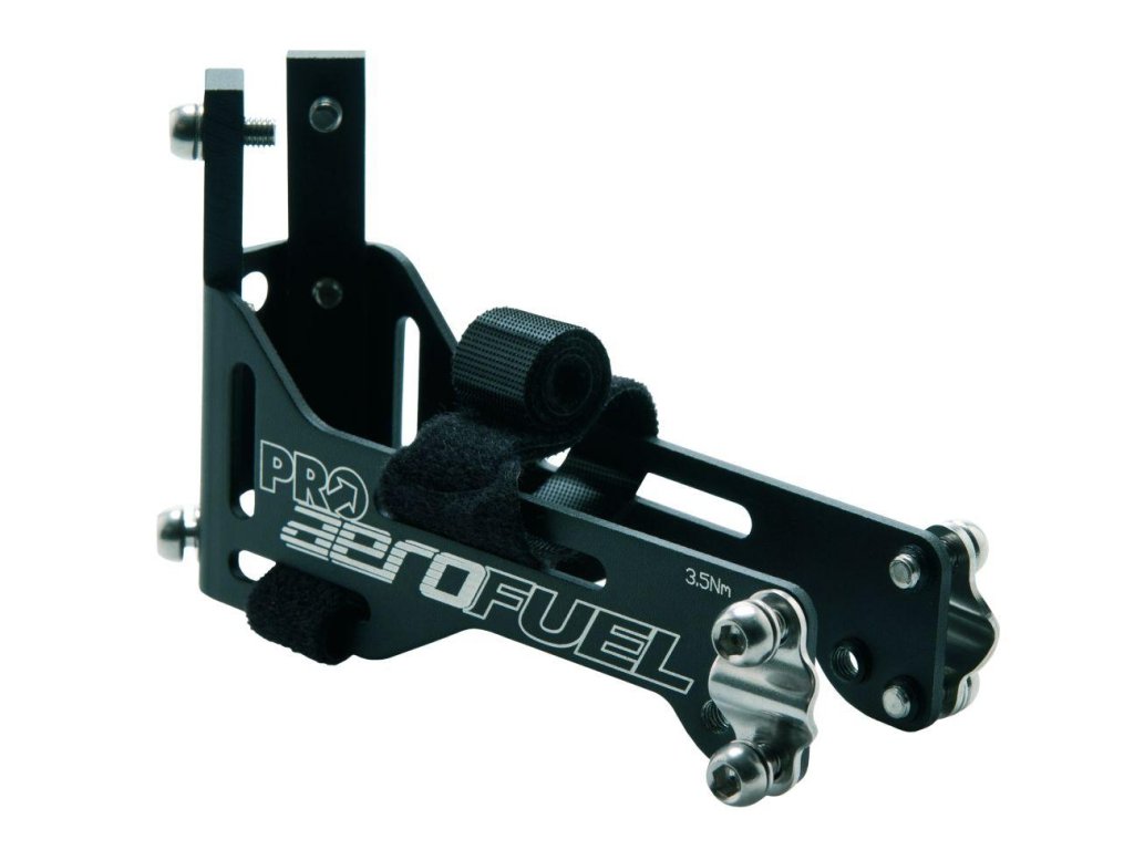Držiak na 2 košíky na fľašu vhodný pre použitie pri časovkách alebo triatlone. Jednoduchá montáž na sedlovú trubku, nastaviteľný uhol a výška. Materiál hliník.