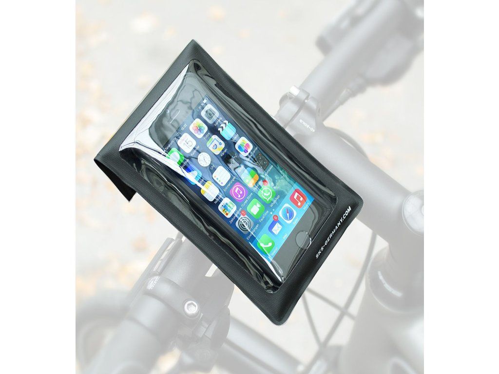 Nepromokavý držák pro smartphony a GPS. Maximální velikost telefonu 155x90.