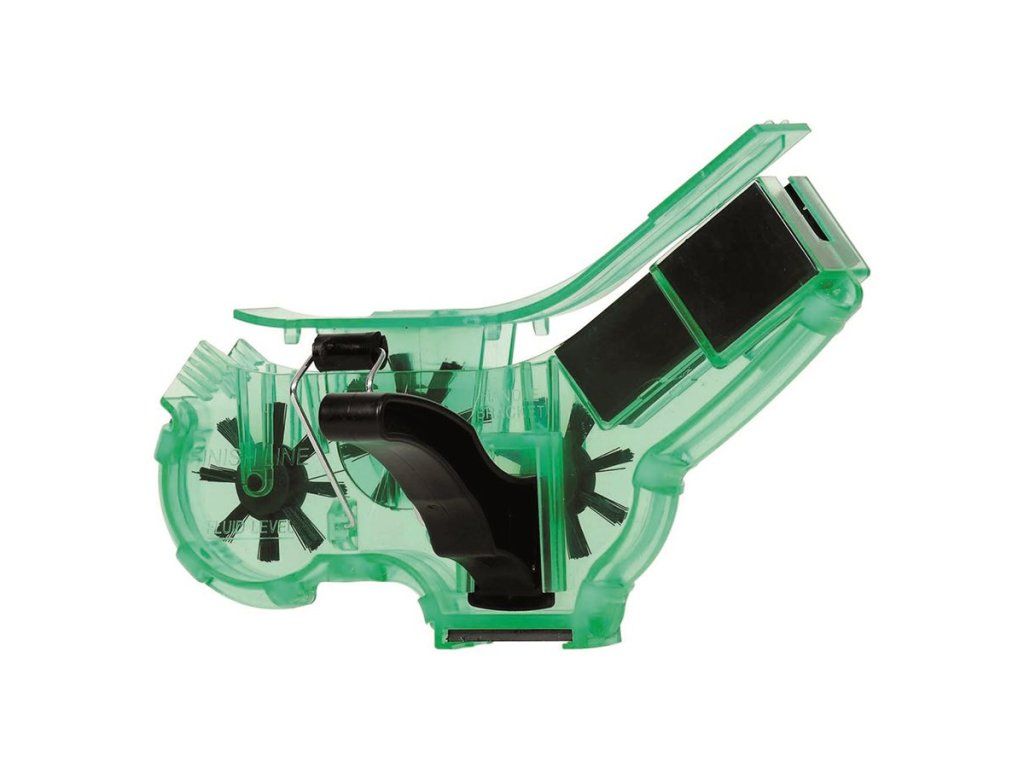Nová vylepšená myčka řetězu má tři rotující kartáče. Díky stěrkám u výstupu z myčky řetěz nevytahuje čistící prostředek ven. Myčka má na dně silný magnet, který přitahuje kovové zbytky a špony při mytí. Není třeba demontovat řetěz. Myčka se nasadí na řetěz, který je během krátké doby mytí zcela čistý. Myčka se snadno nasazuje i snímá z řetězu a má odnímatelné držadlo. Sada obsahuje 120 ml účinného odmašťovače EcoTech® 2 a 60 ml univerzálního maziva Teflon™ Plus. Čistící kartáčky jsou vyměnitelné.