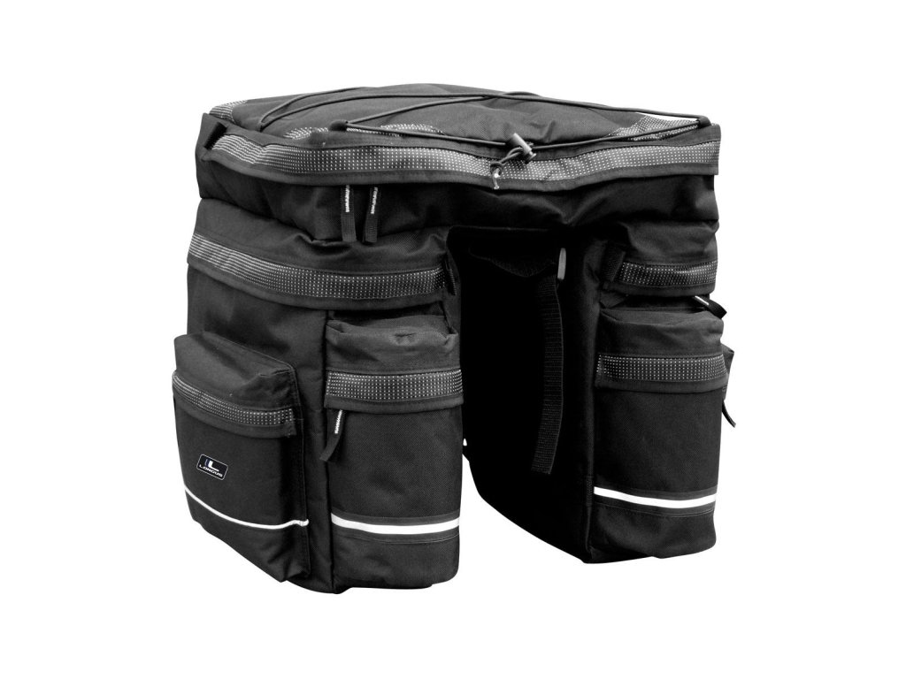 Veľkoobjemová trojdielna kapsa na nosič vhodná na dlhú cykloturistické výlety. Okrem troch hlavných priestorov je k dispozícii aj množstvo bočných vreciek uzatváraných zipsami, ktoré zväčšujú celkový objem úložného priestoru. Prívesky na bežcoch zipsov výrazne uľahčuje časté otváranie a zatváranie. Popruhy a sieťové vrecko v hornej časti umožňujú pripevniť ďalšie potrebné predmety. Reflexné pásy v zadnej časti a na bokoch zvyšujú bezpečnosť pri jazde za zníženej viditeľnosti. Vnútorné steny bočných vreciek sú pogumované, horné kryty a horné vrecko je nepremokavé, čo zvyšuje odolnosť kapsy voči premoknutiu v mokrých podmienkach. Kapsa je vyrobená z odolného a húževnatého Polyesteru 600D, ktorý zabezpečuje dlhú životnosť aj pri častom používaní. Súčasťou kapsy je poťah proti dažďu v neónovej žltej farbe.