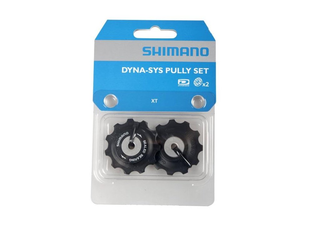 Napínacia a vodiaca kladka pre prehadzovačku Shimano Deore XT. Sada kladiek obsahuje presné ložiská, ktoré zabezpečujú nízke trenie a hladký chod. Kladky sú kompatibilné s týmito prehadzovačkami Shimano: RD-M786, RD-M781, RD-M780, RD-M773, RD-T8000. Kladky nie sú kompatibilné s prehadzovačkami Shimano: RDM8000/8050.