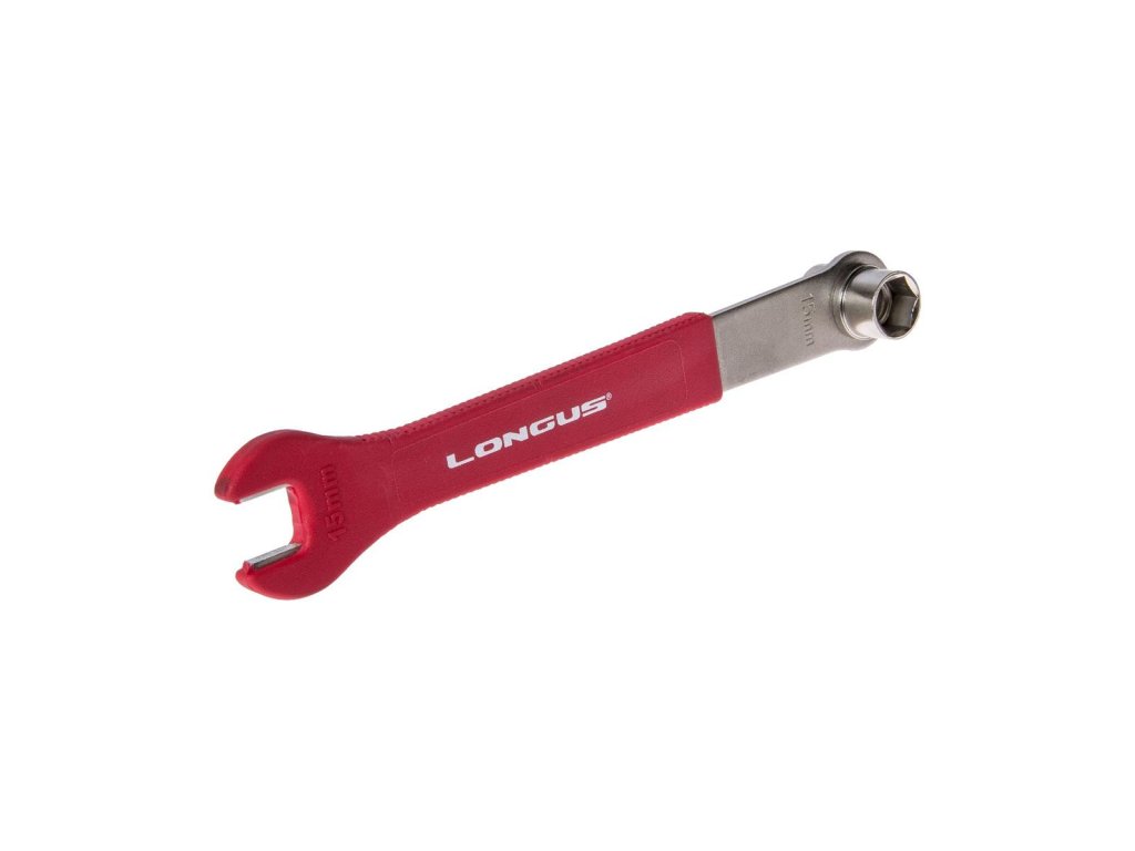 Oceľový kľúč na pedále + gola14/15 s pohodlnou pogumovanou rúčkou. Hrúbka materiálu 4mm, dĺžka kľúča 230 mm.