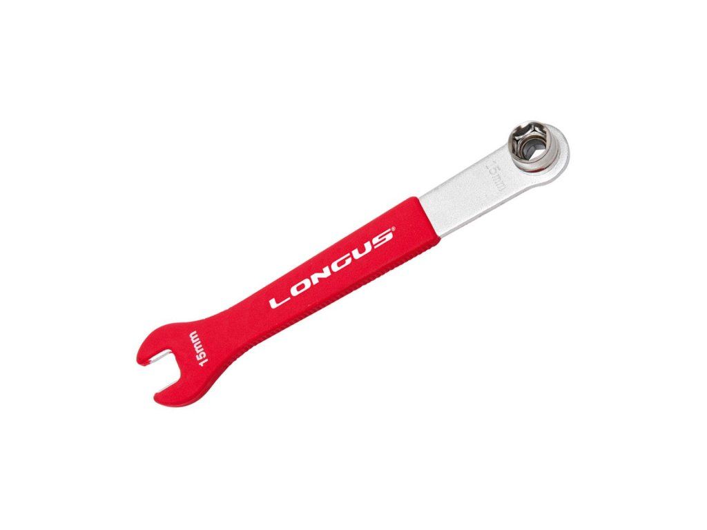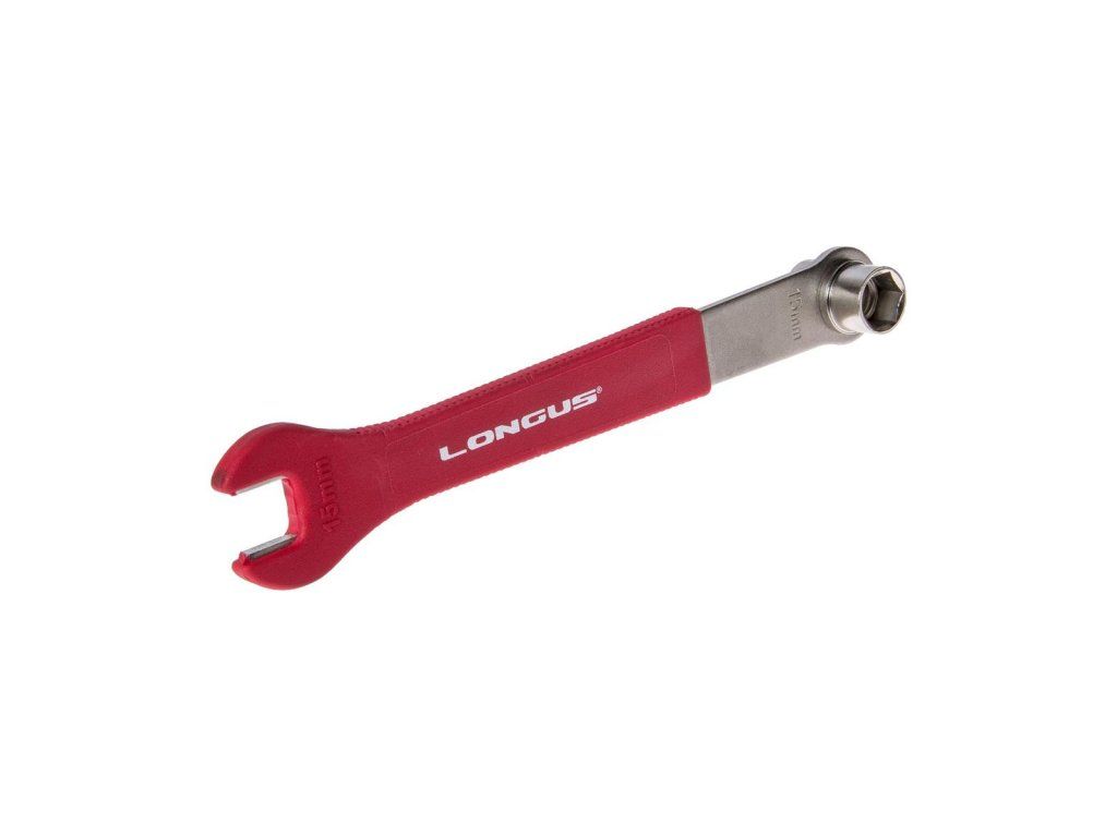 Ocelový klíč na pedály + gola14/15 s pohodlnou pogumovanou rukojetí. Tloušťka materiálu 4mm, délka klíče 230 mm. Váha: 170g