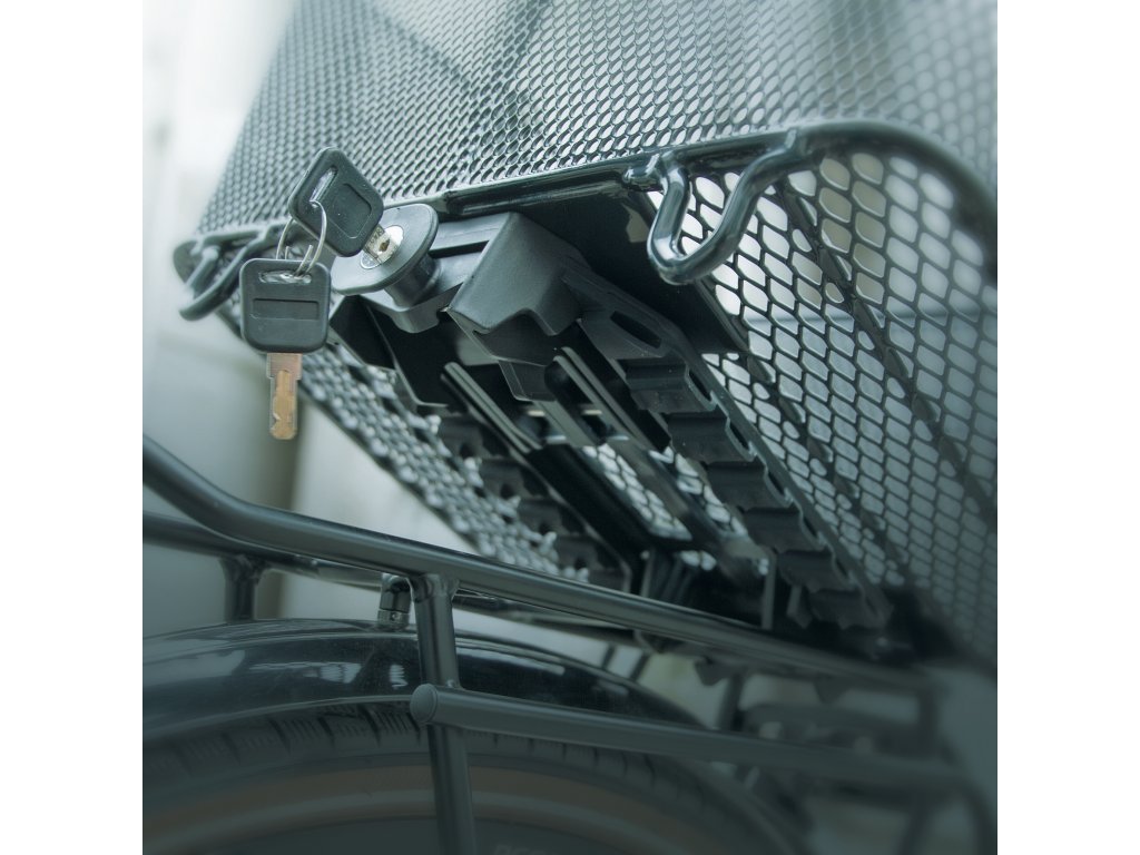Bezpečná montáž pomocí adaptérové desky MonkeyLoadMLT BASKET je zajištěna adaptérovou deskou umístěnou na spodní straně. Během několika sekund se košík zacvakne na všechny nosiče zavazadel se systémem MonkeyLoad-T. Tlumící vrstva pod deskou zajišťuje, že koš na kolo bezpečně sedí na nosiči zavazadel a může být také zajištěn zámkem. Zajišťovací mechanismus se uvolní vytažením dopředu. Košík pak lze snadno přenášet pomocí skládacích, polstrovaných madel. • Kompatibilní se všemi systémy nosičů zavazadel MonkeyLoad • Předem smontovaná adaptérová deska MonkeyLoad se zámkem • Vyrobeno z těsně pletené ocelové síťoviny • Polstrovaná rukojeť • Prohlubeň pro sedlo • Podélná montáž