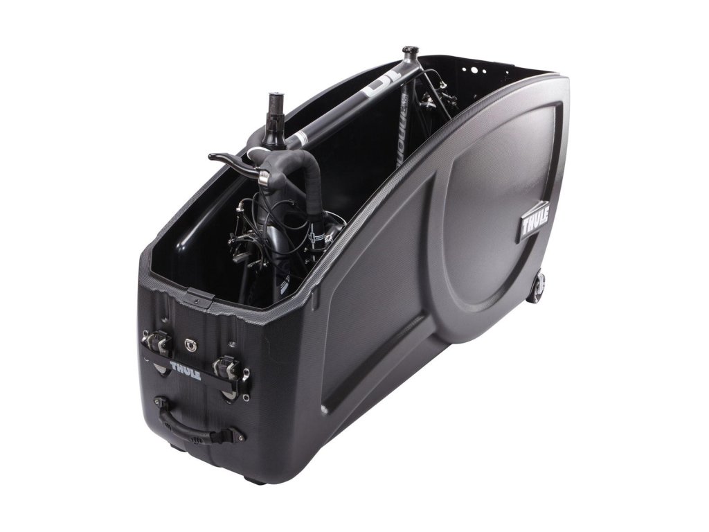 Ochranné puzdro na bicykel s integrovaným stojanom na montáž na bicykel, ktorý zjednodušuje prepravu a cestovanie s bicyklom.
