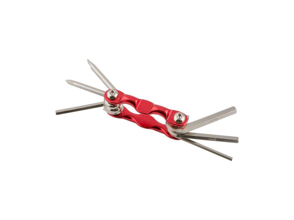 Jednoduché nářadí WAVE 6 se šesti nástroji kterými si jednoduše nastavíte či opravíte kolo. Kompaktní sada obsahuje šestihran 3,4,5,6, plochý a křížový šroubovák. Materiál: Cr-V ocel Rozměr: 33 x 72 x 18 mm Váha: 92g