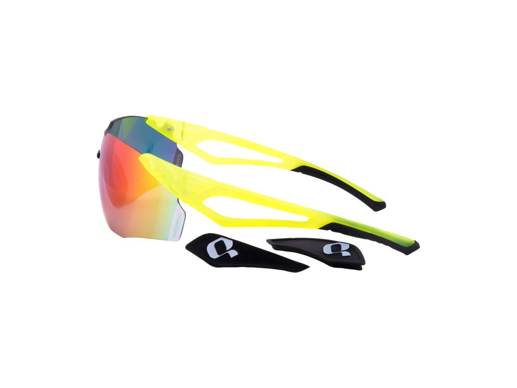 Profesionálne cyklistické okuliare QX1 s vynikajúcou ergonómiou sú vyrobené z materiálu TR90 s polykarbonátovými šošovkami značky ZEISS s farebným zrkadlovým efektom (kat. filtra 2). Bezrámová konštrukcia zabezpečuje bezproblémový výhľad všetkými smermi. Nosový mostík šírky 16mm má nastaviteľné opierky nosa z materiálu MEGOL, ktoré sa dajú prispôsobiť väčšine tvárí. Pohodlné straničky s odnímateľnými bočnými gumenými výplňami pre dodatočné odvetranie sú ukončené protišmykovým materiálom MEGOL. Okuliare sú dodávané v tvrdom puzdre, ktoré zabezpečí ochranu okuliarov a skiel, keď ich nepoužívate. Súčasťou balenia je aj vrecko z mikrovlákna vhodné, okrem ochrany okuliarov, aj na čistenie šošoviek.