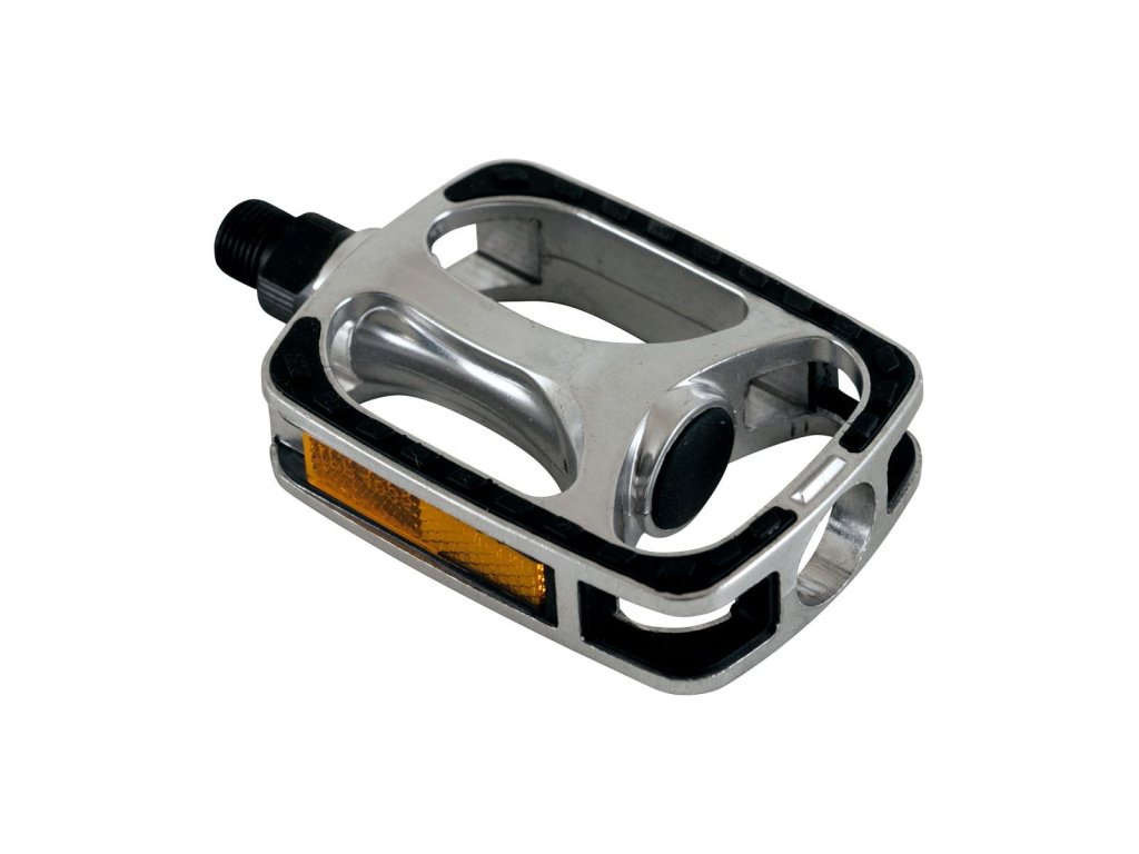 Celohliníkové pedále COMFORT sú vyrobené ako jeden celok. Oska pedálu z bórovej ocele s rozmerom #2 9/16" a dvomi plochami pre pedálový kľúč je položená na nastaviteľných guľôčkových ložiskách. Styčné plochy pedálu majú protisklzovú vrstvou z termoplastickej gumy. Pedále sú vhodné pre Trekkingové a City bicykle. Pedále sú vybavené vsadenými odrazkami po oboch stranách.