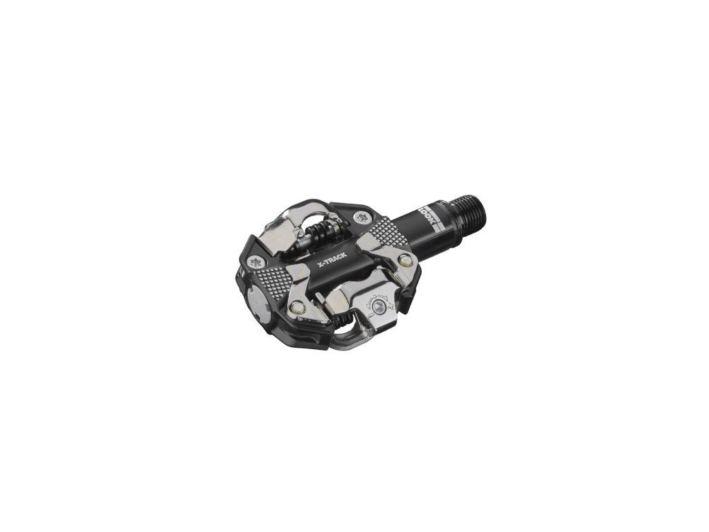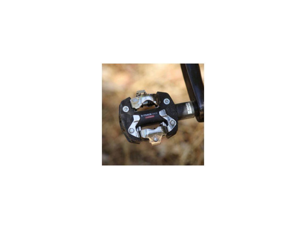 LOOK X-Track je MTB pedál s nejlepším poměrem hmotnosti a kontaktní plochy na trhu. Boční opora vede nohu při hledání pedálu a poskytuje kontaktní bod, i když bota ještě nezacvakla. Tato plocha zabraňuje klouzání nohy a nabízí oporu.