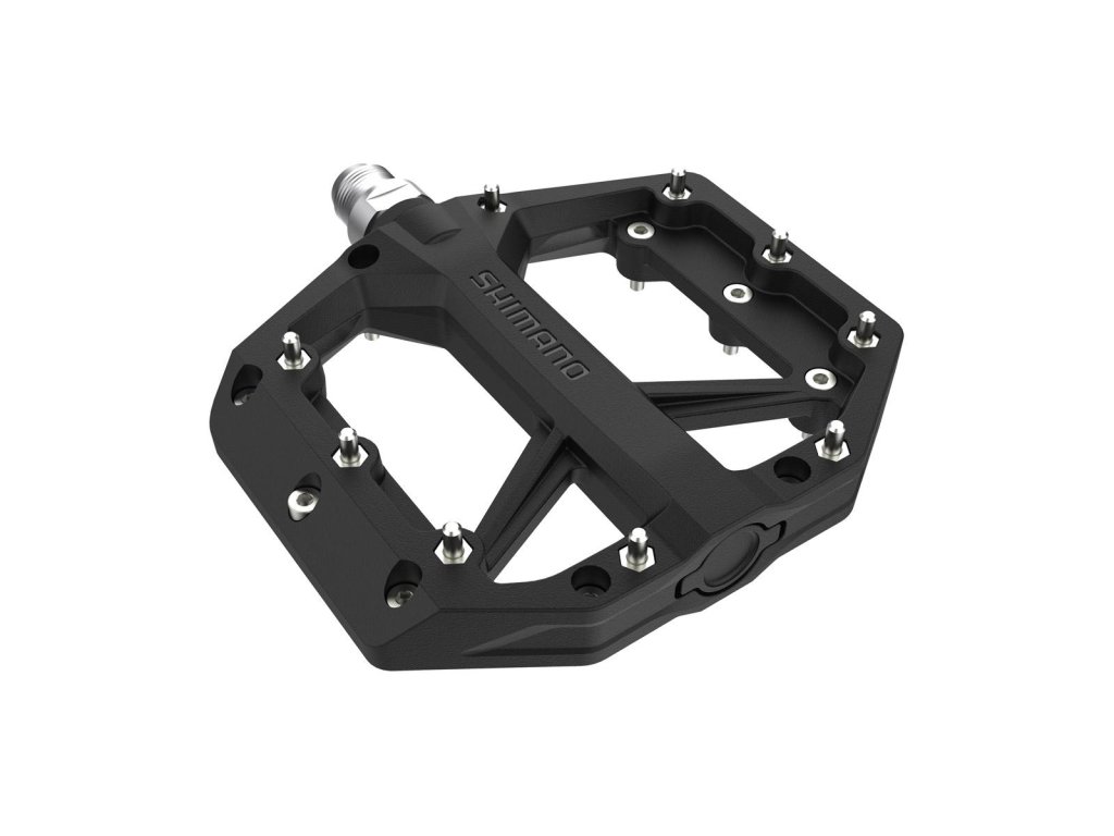 Pedále MTB PD-GR400 bez zámku. Odolné pedále typu Flat pre rôzne jazdné štýly v teréne. Široký tvar pedálu pre lepší komfort, stabilitu a účinnosť šliapania do pedálov. Veľkosť platformy 101x96mm. 9 vymeniteľných pinov na každej strane. Kompozitové telo a oska s odolnou a tuhou konštrukciou.