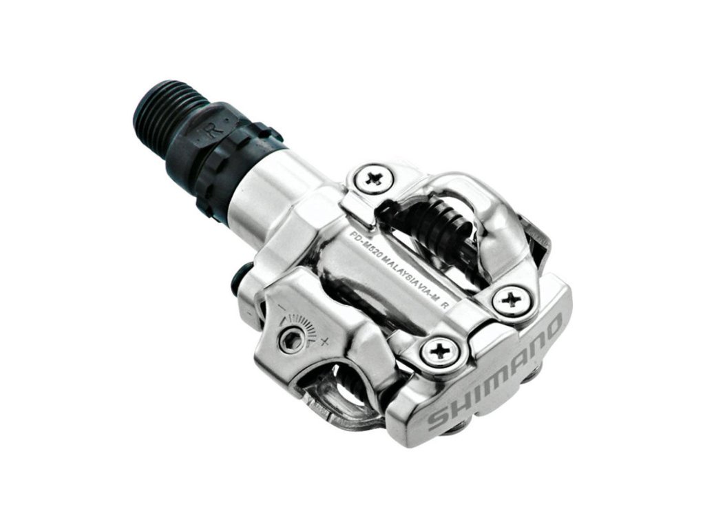 Pedále MTB PDM520 konštrukcie SPD. Obojstranný zámok zarážky. Základné pedále pre MTB začínajúcich jazdcov. Nastaviteľná sila zámku pre upnutie zarážky. Dobré čistiace vlastnosti pedálu v blatistom teréne. Jednoduchá konštrukcia osky pre ľahký servis z chróm-molybdénovej ocele. Dodávané spolu so zarážkami SM-SH51 , pre jednostranné uvoľnenie upnutia.