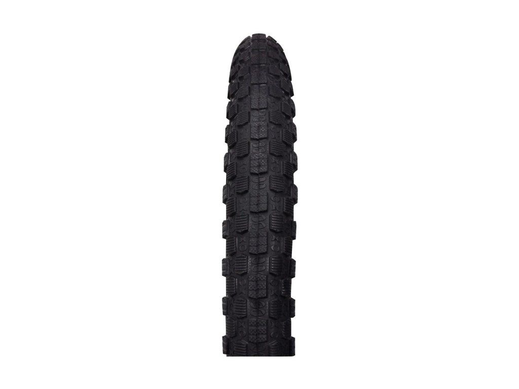 Plášť se širokým středovým pásem s drobnými jehlanovými výstupky a hrubšími obdélníkovými ploškami je ideální do mokrého nebo sypkého terénu. Nízký valivý odpor neubírá z hnací síly při tak potřebném záběru. Boční vysoké výstupky udržují směrovou stabilitu a zajišťují dostatečnou přilnavost i v zatáčkách a šikmých cestičkách. Široká styčná plocha s terénem nedovolí zabořit se ani na písčitém povrchu. 27TPI konstrukce pláště zajišťuje velmi dobrou životnost a odolnost běhounu vůči proražení při zachování vynikajícího poměru cena/výkon. Ztenčované boční stěny SKIN WALL snižují celkovou hmotnost pláště. Váha: 590g