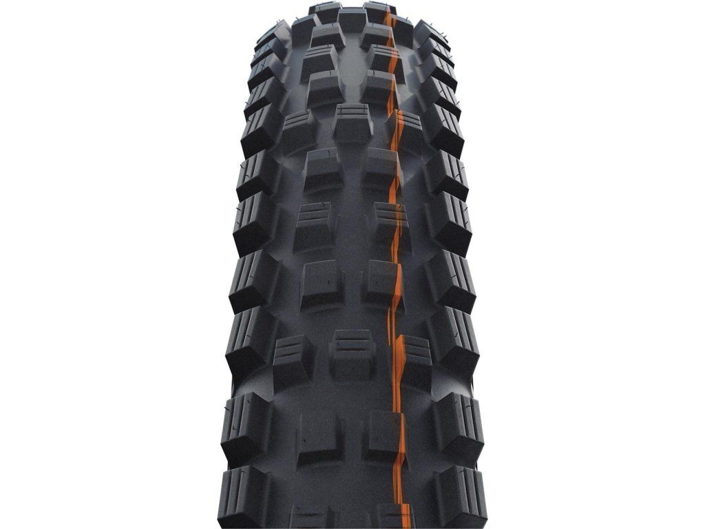 Schwalbe Magic Mary je ikonický plášť pro enduro a downhill, který patří mezi nejpoužívanější modely na světových tratích. Podle Schwalbe se jedná o univerzální plášť pro jezdce, kteří chtějí maximální kontrolu, jistotu a výkon v náročném terénu. Otevřený dezén s agresivními bočními bloky poskytuje výbornou trakci v zatáčkách i na měkkém povrchu, zatímco střední bloky jsou tvarovány tak, aby zlepšovaly brzdnou sílu a zároveň se snáze odvalovaly. V-Grooves drážky, vyvinuté speciálně pro Magic Mary, pomáhají hrotům lépe se „zakousnout“ do povrchu a zvyšují grip v technických pasážích. Magic Mary je dostupná v různých konstrukcích od Super Trailu až po Super Downhill, což umožňuje přizpůsobit plášť stylu jízdy i náročnosti terénu. Podle Schwalbe je vhodná nejen pro downhill a enduro, ale také pro trail ae-MTB, kde nabízí vysokou stabilitu a spolehlivost. Měkčí směsi jako Soft a Ultra Soft poskytují maximální přilnavost, zatímco pevné bočnice zvyšují odolnost proti proražení. Magic Mary je plášť pro jezdce, kteří chtějí jistotu v rychlých pasážích, kontrolu ve strmých sjezdech a spolehlivý grip v měnících se podmínkách.