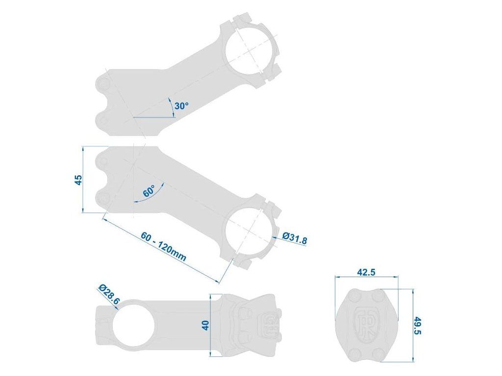 Nový model oblíbeného představce Ritchey 4-Axis-44 vyroben z hliníkové slitiny s vysokou pevností a tuhostí AL6061. Objímka pro sloupek vidlice je 44 mm vysoká a má vnitřní průměr 28,6 mm. Objímka pro řídítka je 44 mm široká a má průměr 31,8 mm. Představec 4-Axis44 je vyráběn v délkách 60-120 mm a je zahnutý pod úhlem 84/6 stupňů. Hmotnost při délce 120 mm je 155 g.