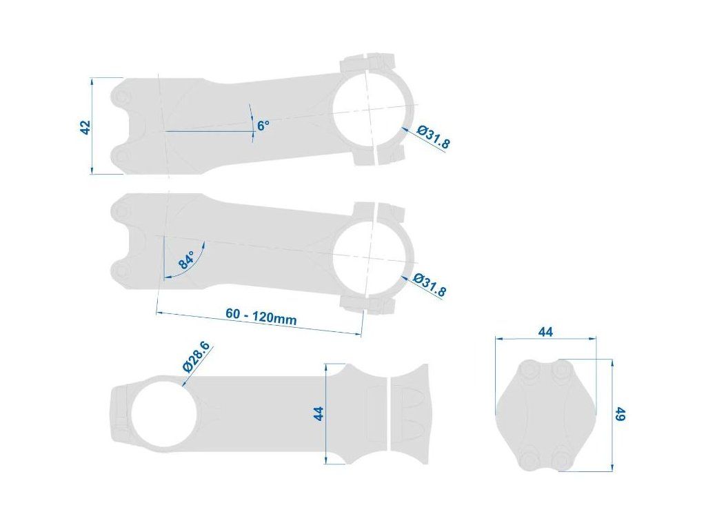 Opravdu můžete mít všechno – představec WCS C220 se svým výkonem vyrovná revolučnímu designu představce C260, ale jeho montáž a demontáž je rychlejší a jednodušší díky nalisovanému rozhraní na řídítka a dopředu směřujícímu hardwaru. Představec WCS C22 84D nabízí 6° kladného nebo záporného stoupání. Konstrukce objímky řídítek C220, která se poprvé osvědčila na představci Ritchey Trail, vytváří bezpečnější rozhraní tím, že omotává řídítka o celých 220°. Síly šroubů jsou vyrovnány se svorkou tak, že tělo představce „objímá“ řídítka, která jsou méně náchylná k poškození lehkých řídítek. Tato konstrukce svorky umožňuje lehčí čelní desku a tělo představce bez obětování pevnosti nebo tuhosti. Tělo představce je z kovaného hliníku 2014 pro další snížení hmotnosti. Všude jsou použity černé šrouby z nerezové oceli prvotřídní kvality.6° kladného nebo záporného vzestupuPrůměr sloupku 1-1/8" nebo 1-1/4". 60-140mmÚhel: 84°/6°Průměr objímky řídítek: 31,8 mmŠířka objímky řídítek: 44 mmPrůměr sloupku 1-1/8" (28,6 mm) nebo 1-1/4" (31,8 mm)Výška sloupku 42 mm (1-1/4 132 g (100 mm - 1-1/8")Barva: Blatte