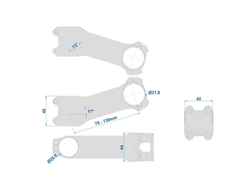 Hliníkový představec na kolo kovaný unikátní metodou 3D Net Shape Forging, zaručující maximální pevnost a nejnižší možnou hmotnost. Nová 220 čtyřšroubová objímka (4 x M4) snižuje hmotnost, zvyšuje torzní tuhost přední části představce a snižuje tlak na řidítka. Umožňuje standardní výměnu řídítek. Různé délkyPro průměr sloupku: 1-1/8 mmPrůměr řídítek: 31,8 mmÚhel: +-6°Materiál: 2014 AlloyHmotnost: 132g (100 mm)