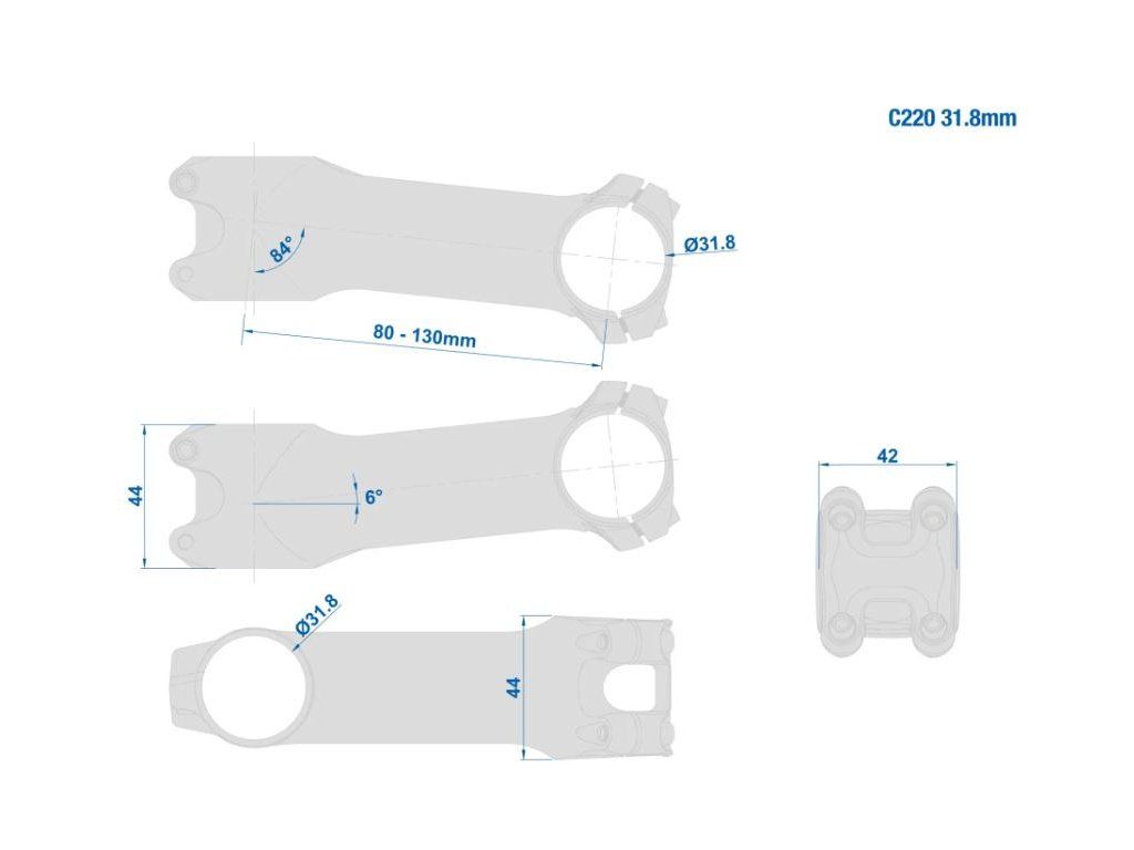 Nejnovější Ritchey představec s designem pro moderní rámy.Squared design s C220 objímkou3D kované 2014 Alloy tělo s vnitřním obráběním na snížení hmotnosti220 čtyřšroubová objímka (4 x M4) - snižuje hmotnost, zvyšuje torzní tuhost přední části představce a snižuje tlak dodávkyRůzné délkyPrůměr sloupku: 1-1/8" (28.6mm)Úhel: 84°/6°Pro řídítka (průměr): 31,8 mmŠířka představce: 44 mmHmotnost: 139g (100mm)