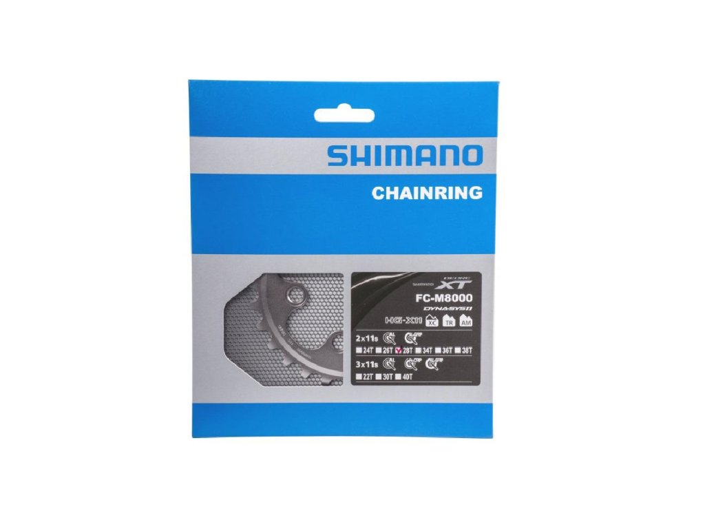 Najmenší prevodník XT pre kľuky FCM8000, 11-kolo, 28 zubov. Bez nábehových zubov. Pre dvojprevodník.