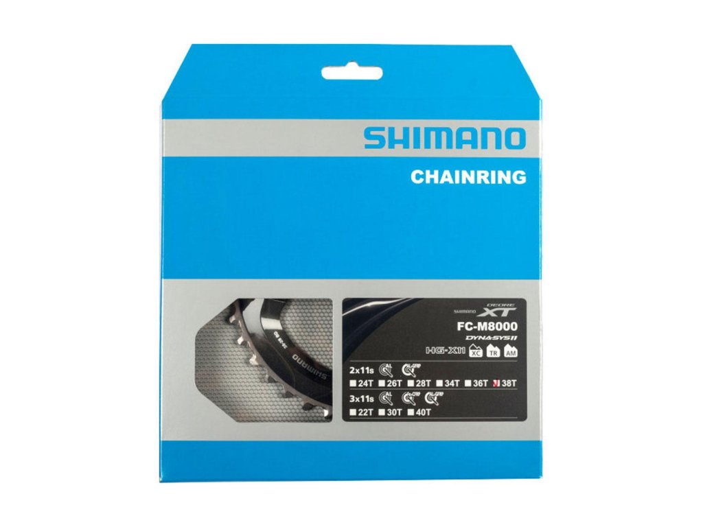 Veľký prevodník XT, 38 zubov pre kľuky FC-M8000. Pre 2x11-kolo. So špeciálne tvarovanými zubami a s reťazami systému HG-X11 zabezpečí vynikajúcu úroveň radenia. Pre dvojprevodník.