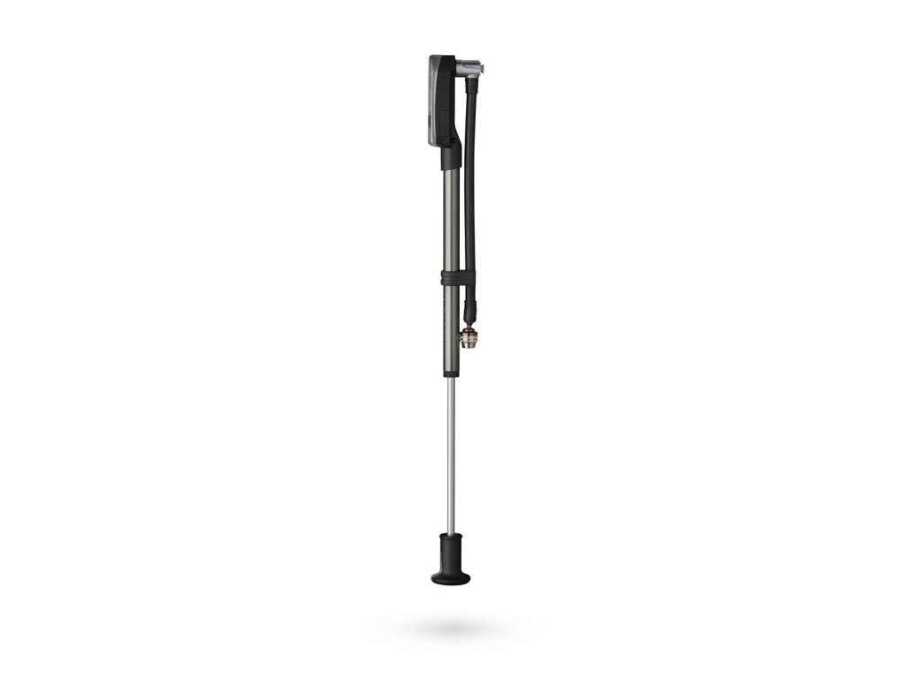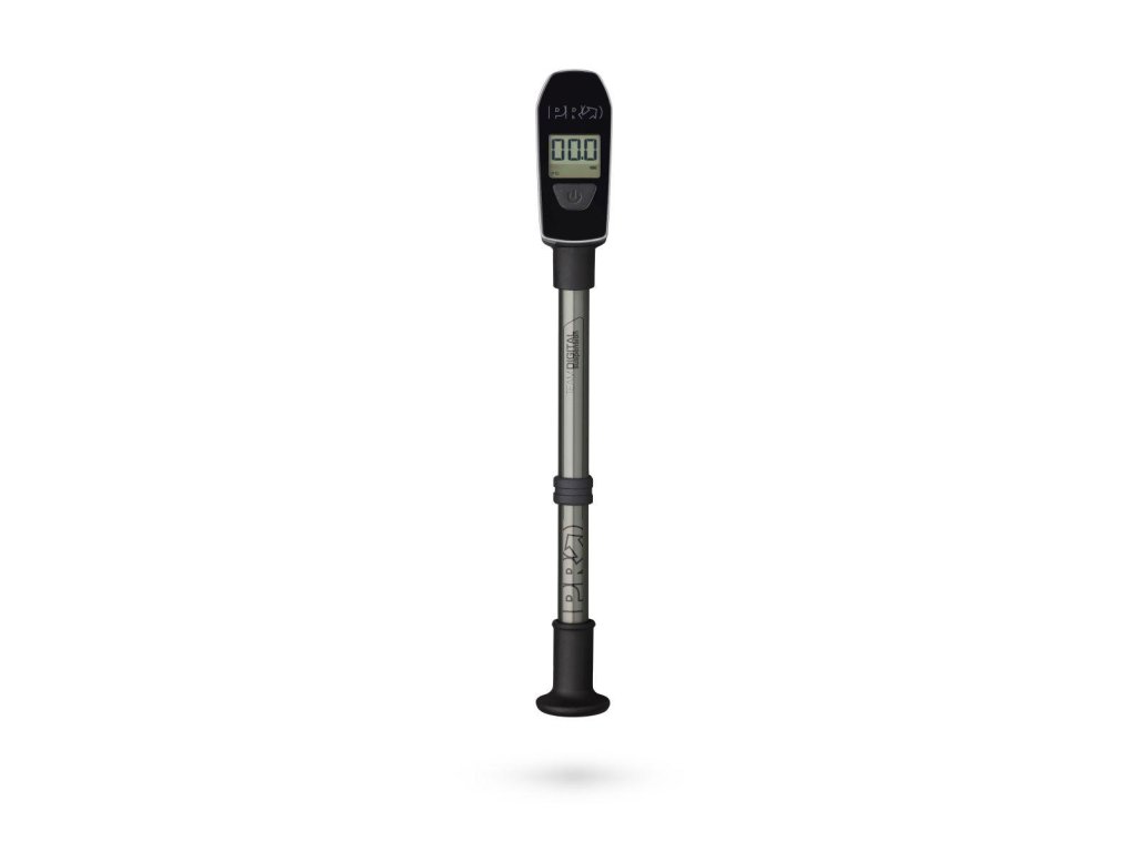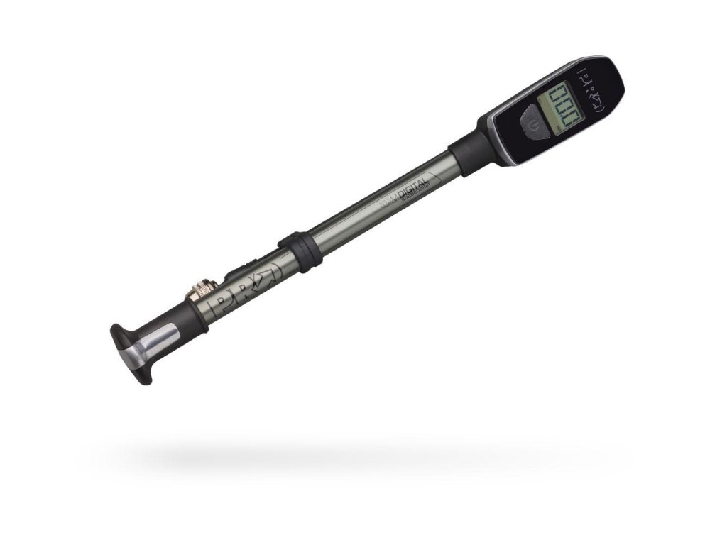 Praktická minipumpa s digitálnym manometrom na vidlicu/tlmič.