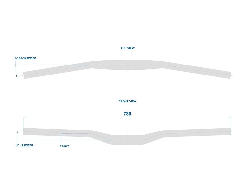 MTB řídítka řady Logic, vyrobená z hliníku 6061/T6 s celkovou hmotností 395 g. Model Rizer jsou řídítka s délkou 780 mm a průměrem pro představce 31,8 mm. Matný design se zdvihem 20 mm, backsweep 9 ° a upsweep 2 °.