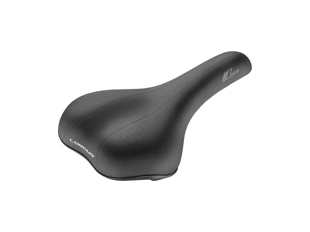 Pohodlné sedlo so zníženým stredovým pásom a kvalitným odolným zvrškom poskytuje vynikajúce pohodlie pri jazde v meste aj pri jazde v ľahkom teréne. Pod odolným polyuretánovým povrchom je vysoko pružná pena, ktorá sľubuje pohodlie už na prvý dotyk. Po obvode je sedlo chránené plastovým krytom, ktorý zabraňuje poškodeniu sedla pri páde bicykla alebo ak bicykel opriete. Pevné oceľové koľajničky zvyšujú životnosť sedla.