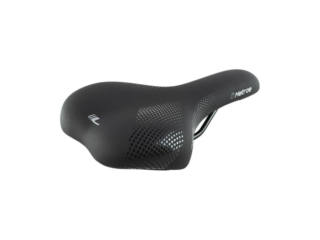 Komfortné sedlo METRO je konštrukčne predurčené pre pohodlnú jazdu v mestských podmienkach. Vynikajúci komfort zabezpečuje pamäťová pena, ktorá pokrýva celú plochu sedla a umožňuje bezproblémovú jazdu v akejkoľvek pozícii, či už vzpriamenej alebo mierne predklonenej. Oporné výplne pod pamäťovou penou sú rôzne tvarované pre zvýšenie celkovej ergonómie sedla. Znížený stredový pás redukuje tlak v oblasti medzi sedacími kosťami. Odolný a na dotyk príjemný zvršok zabraňuje pokĺznutiu na sedle počas jazdy. Pevné oceľové koľajničky zvyšujú životnosť sedla.