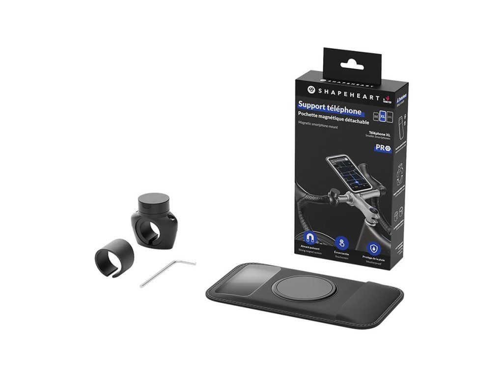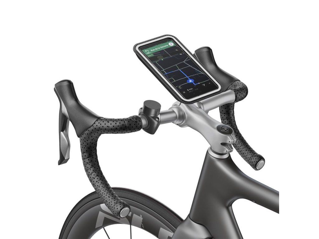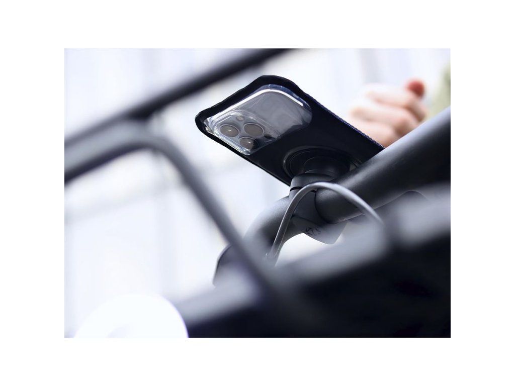 Šroubovací magnetický držák s pouzdrem na telefon pro použití na jízdním kole. Sada je dostupná ve 3 velikostech pouzdra podle velikosti telefonu (M, XL a XXL). Pouzdro na telefon je voděodolné, má průzor pro fotokameru a také vstup na sluchátka nebo USB, takže můžete telefon dokonce i za jízdy nabíjet. Samotný magnetický držák se upíná na řidítka nebo představec pomocí 2 šroubů a obejme řidítka o průměru 20-28 mm. Telefon lze snadno ovládat i v pouzdru, dotykový displej funguje i přes krycí fólii.
