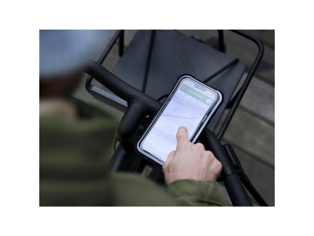Šroubovací magnetický držák s pouzdrem na telefon pro použití na jízdním kole. Sada je dostupná ve 3 velikostech pouzdra podle velikosti telefonu (M, XL a XXL). Pouzdro na telefon je voděodolné, má průzor pro fotokameru a také vstup na sluchátka nebo USB, takže můžete telefon dokonce i za jízdy nabíjet. Samotný magnetický držák se upíná na řidítka nebo představec pomocí 2 šroubů a obejme řidítka o průměru 20-28 mm. Telefon lze snadno ovládat i v pouzdru, dotykový displej funguje i přes krycí fólii.