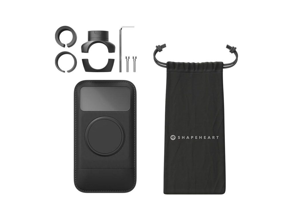 Sada obsahuje pouzdro na telefon, magnetický držák na řidítka, 2 silikonové podložky pro různé průměry řidítek, inbus, 2 šrouby a textilní sáček.